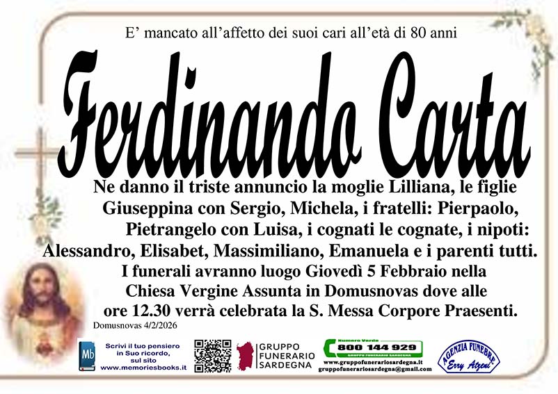 I familiari ringraziano anticipatamente tutti coloro che parteciperanno alla cerimonia funebre