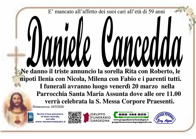 I familiari ringraziano anticipatamente tutti coloro che parteciperanno alla cerimonia funebre
