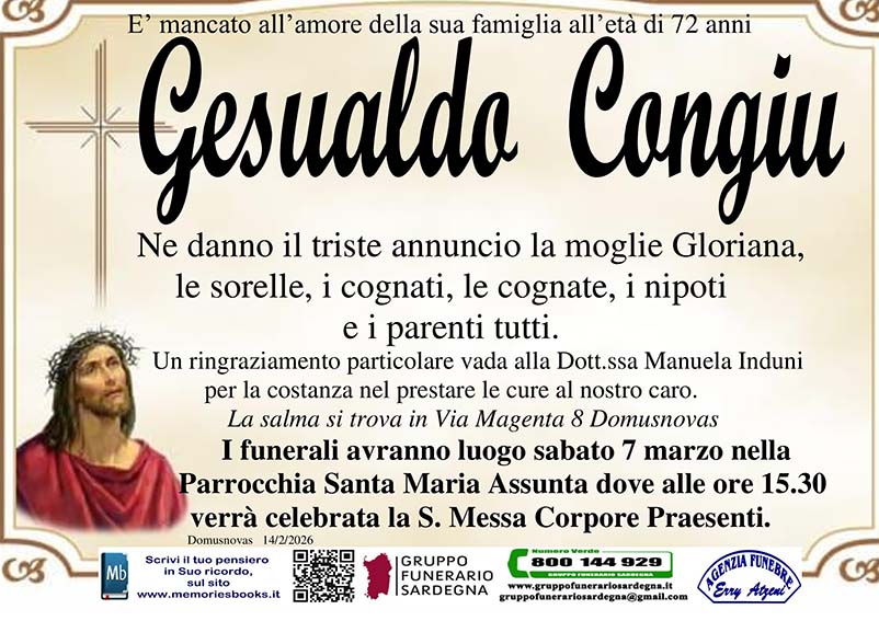 I familiari ringraziano anticipatamente tutti coloro che parteciperanno alla cerimonia funebre