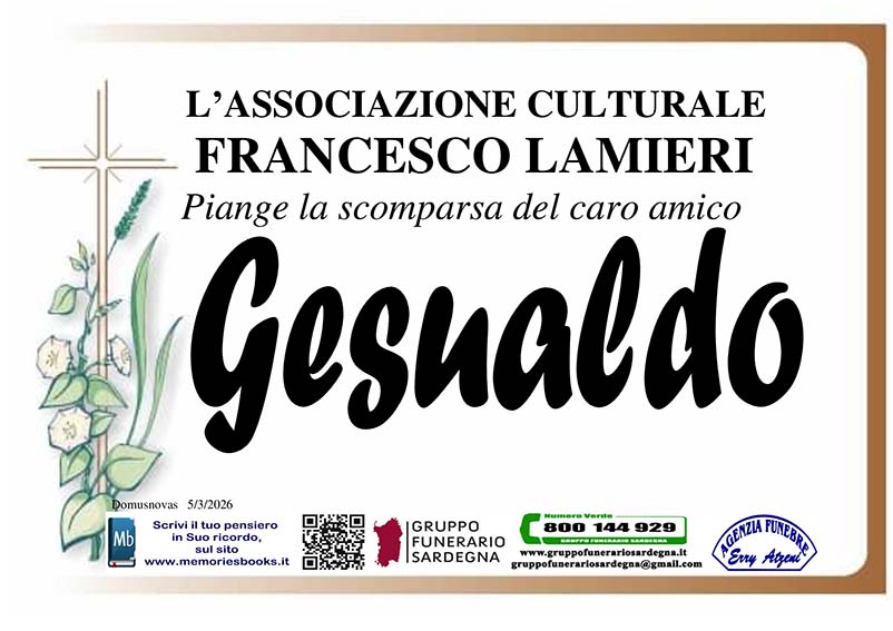 Ciao caro Gesualdo,è stato davvero un piacere averti conosciuto. Ci mancheranno i nostri incontri e le chiacchierate insieme, così come la tua gentilezza e la tua bontà. Fai buon viaggio. Un forte abbraccio alla cara Gloriana.
