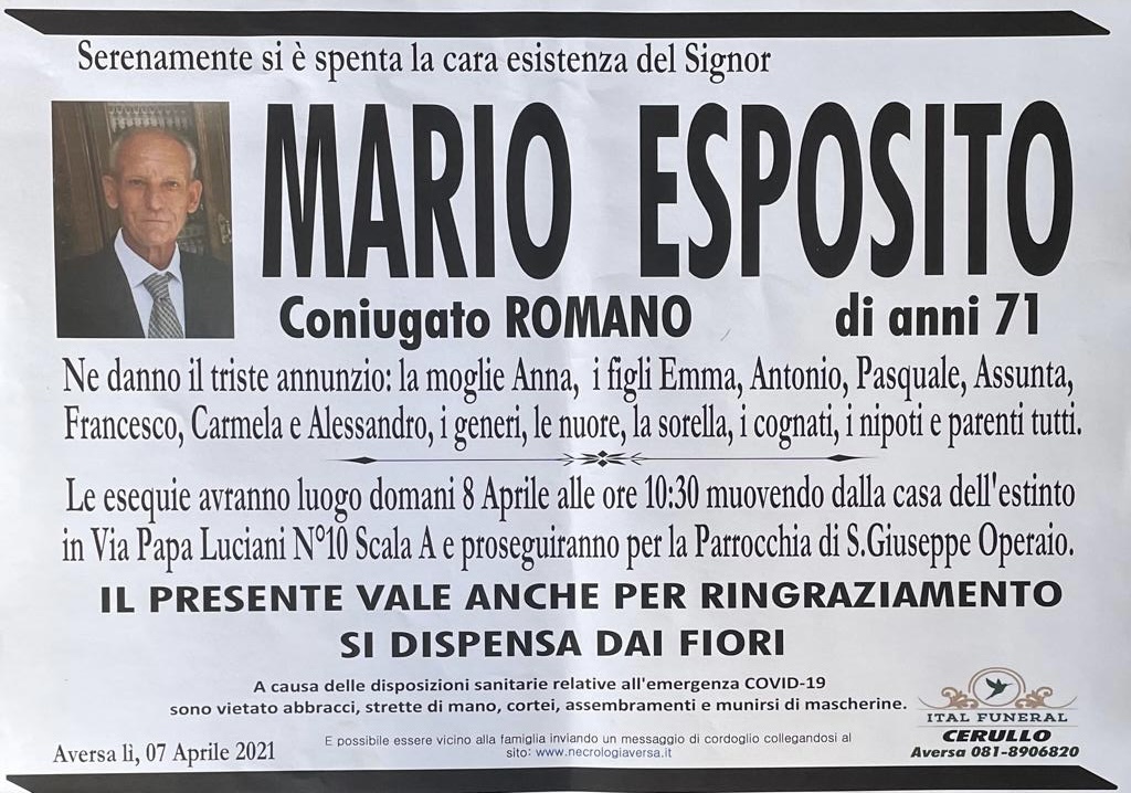 I familiari ringraziano anticipatamente tutti coloro che parteciperanno alla cerimonia funebre