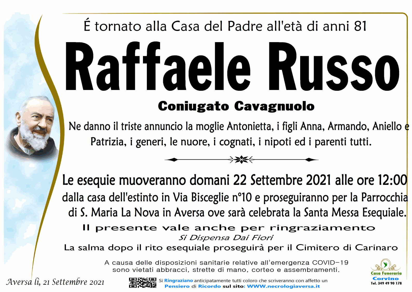 I familiari ringraziano anticipatamente tutti coloro che parteciperanno alla cerimonia funebre