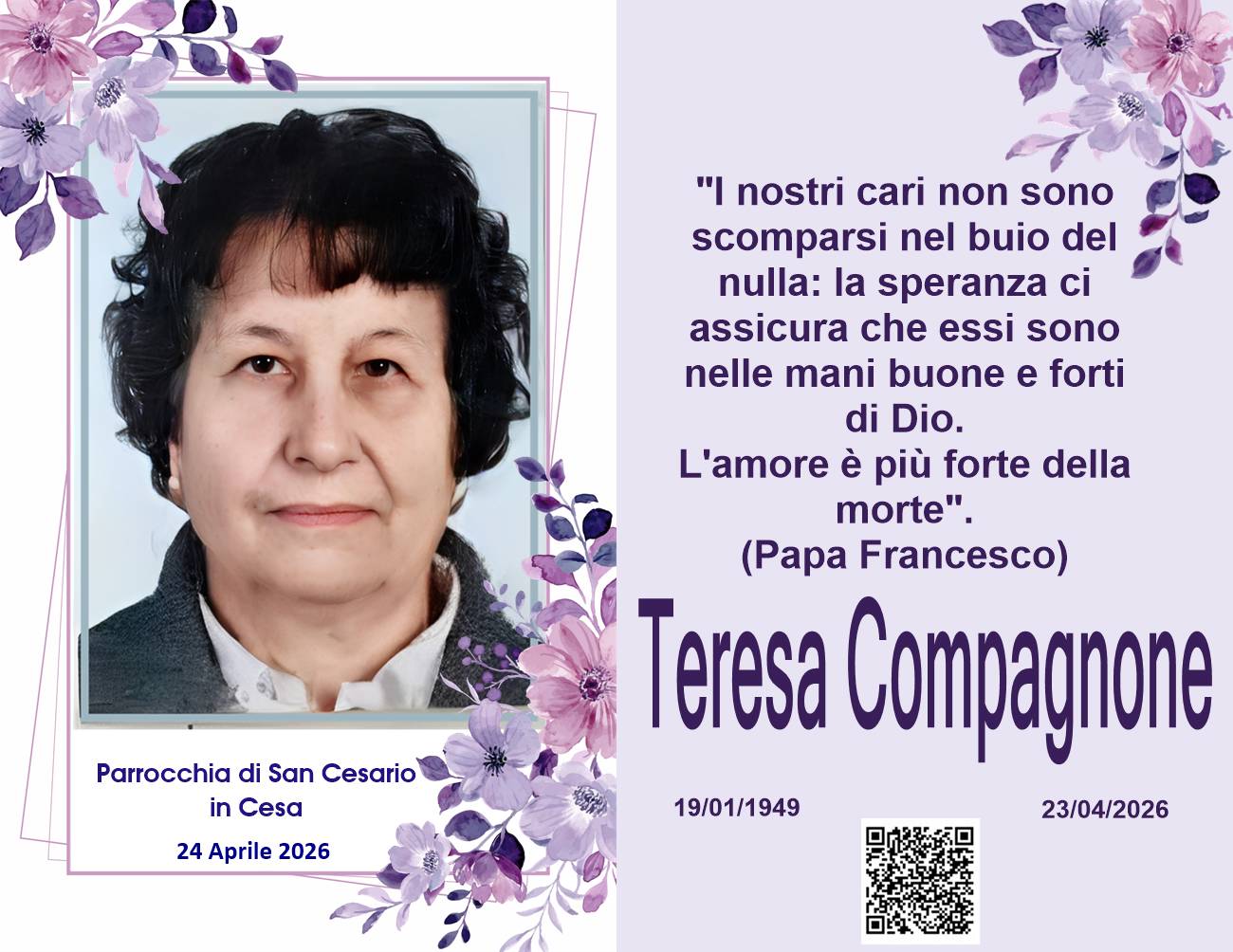 I familiari ringraziano anticipatamente tutti coloro che parteciperanno alla cerimonia funebre