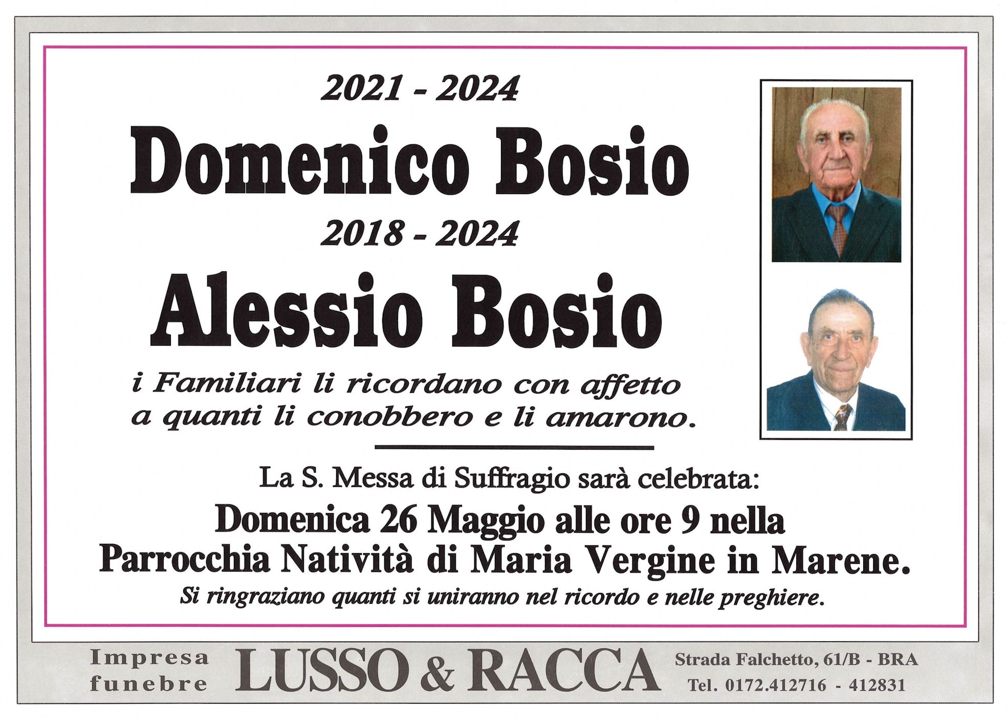 I familiari ringraziano anticipatamente tutti coloro che parteciperanno alla cerimonia funebre