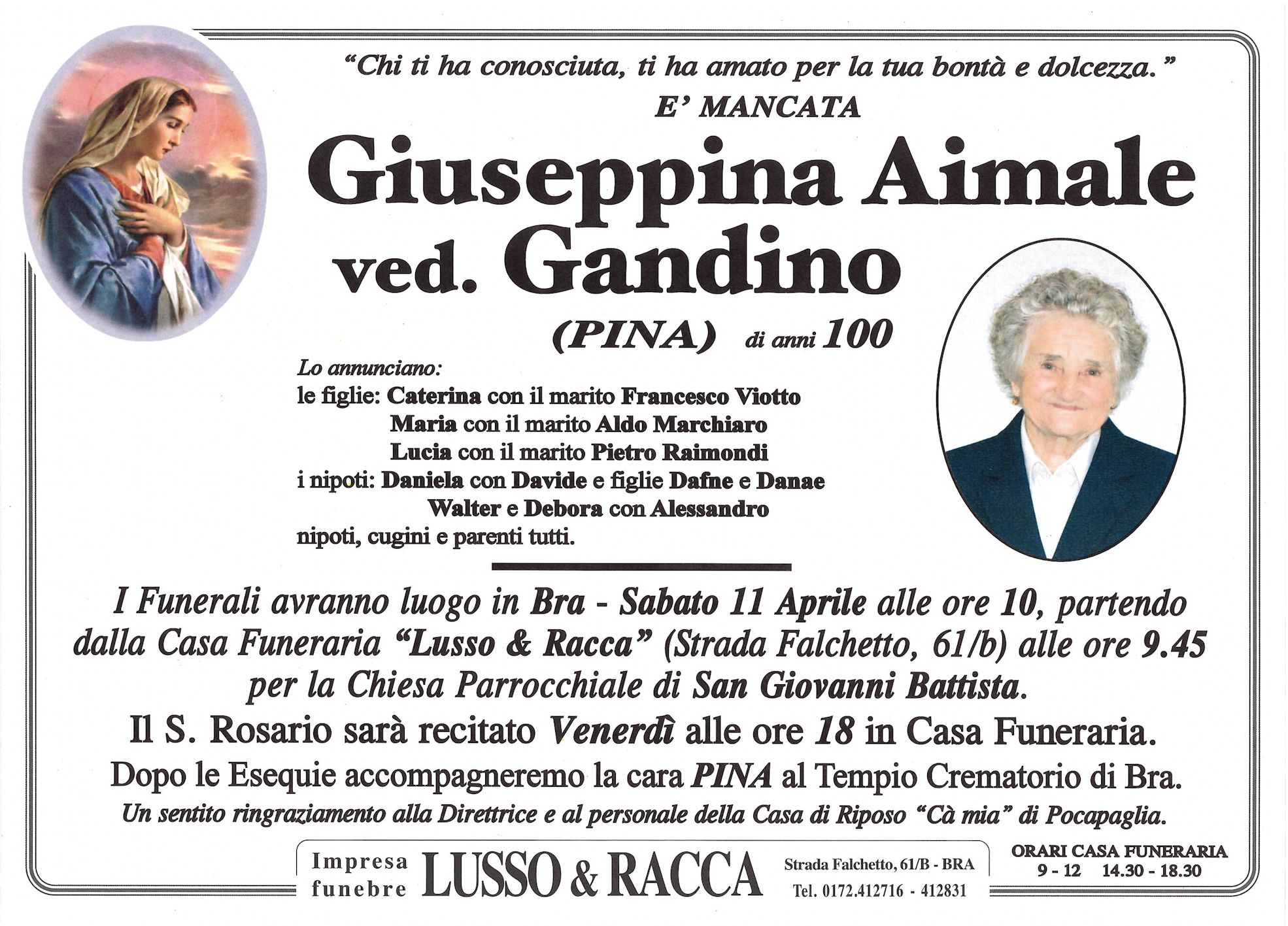 I familiari ringraziano anticipatamente tutti coloro che parteciperanno alla cerimonia funebre