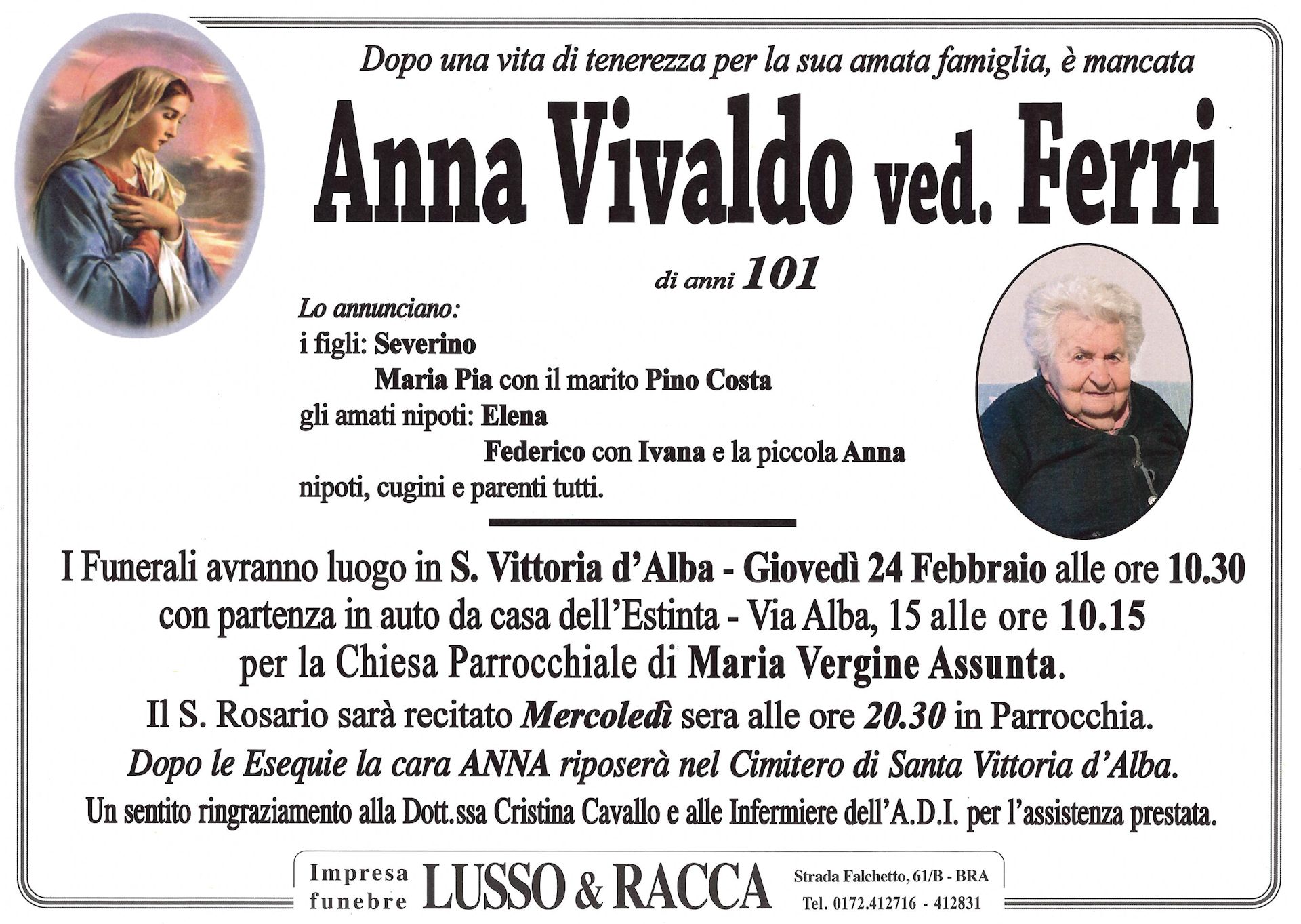 I familiari ringraziano anticipatamente tutti coloro che parteciperanno alla cerimonia funebre