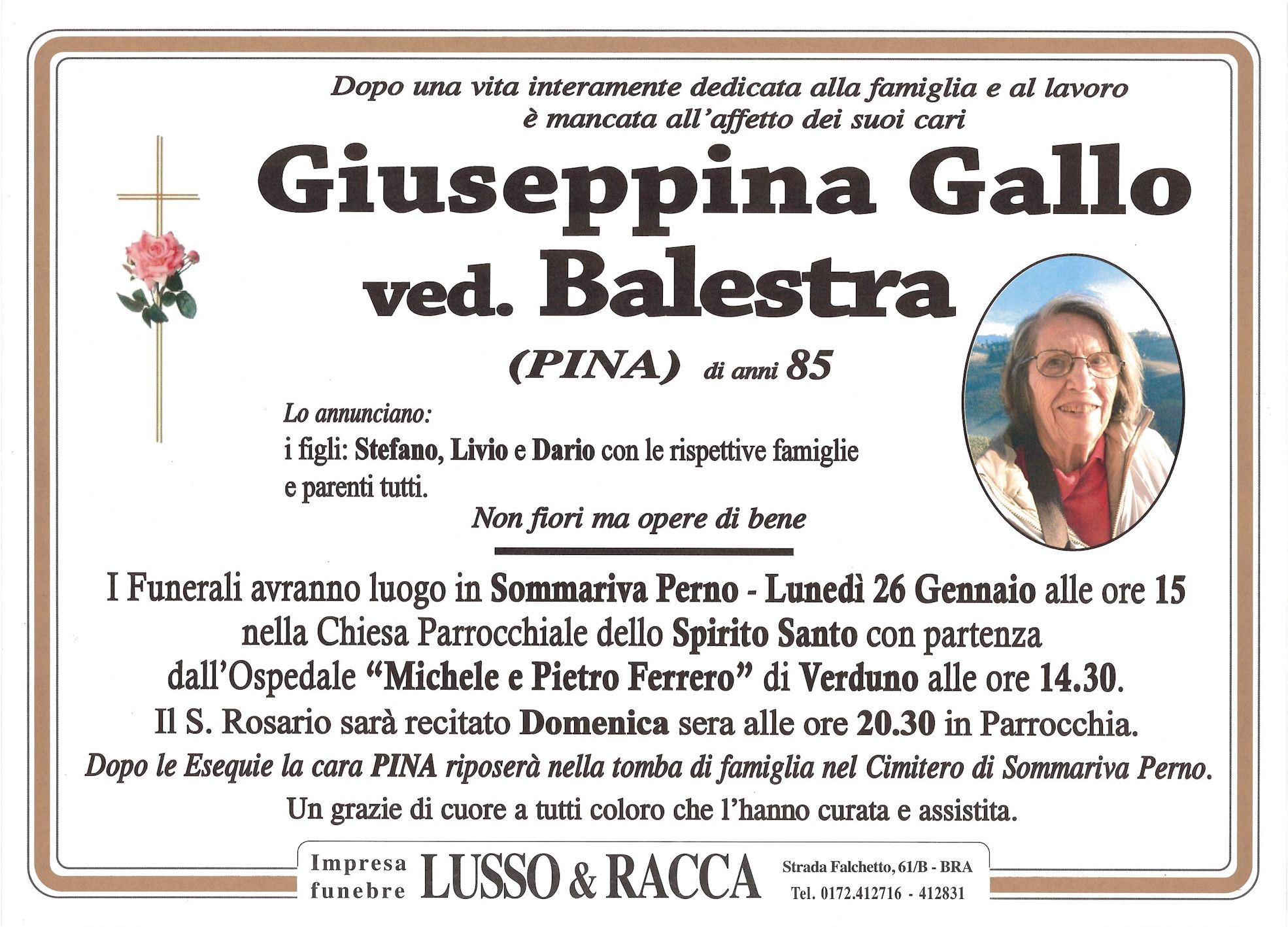 I familiari ringraziano anticipatamente tutti coloro che parteciperanno alla cerimonia funebre