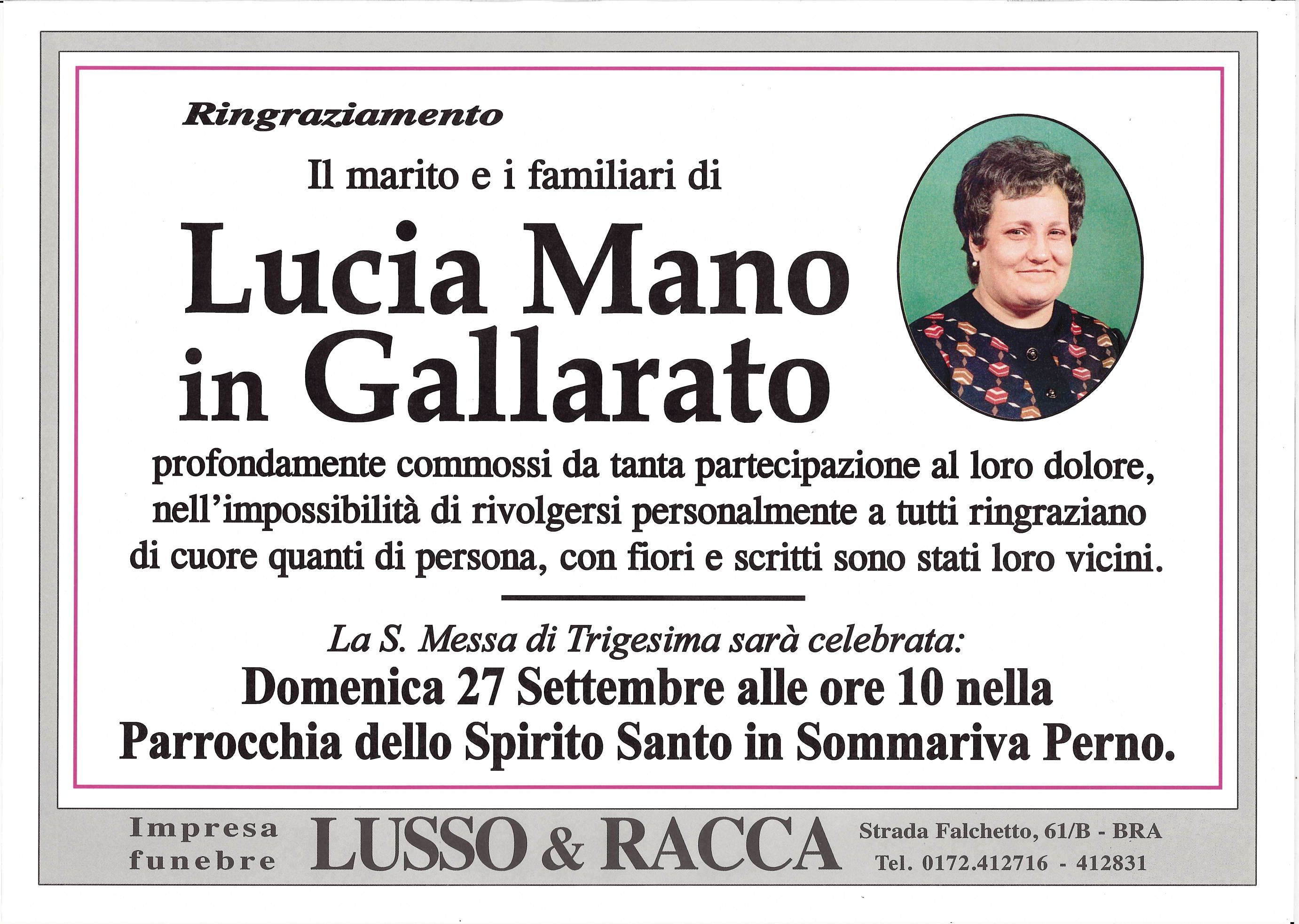 Caro zio Pierino, ti sono vicina in questo momento di distacco dalla zia Lucia. Ricordiamo insieme tutti i momenti belli di gioia e di sorriso che sempre ci ha donato e che sono ora impressi nel nostro cuore. Con dispiacere non posso partecipare al funerale, ma la ricorderò nella Santa Messa di domani e pregherò con voi. Con tanto affetto, tua nipote Lucia Gallarato e le sorelle Clarisse di Bra