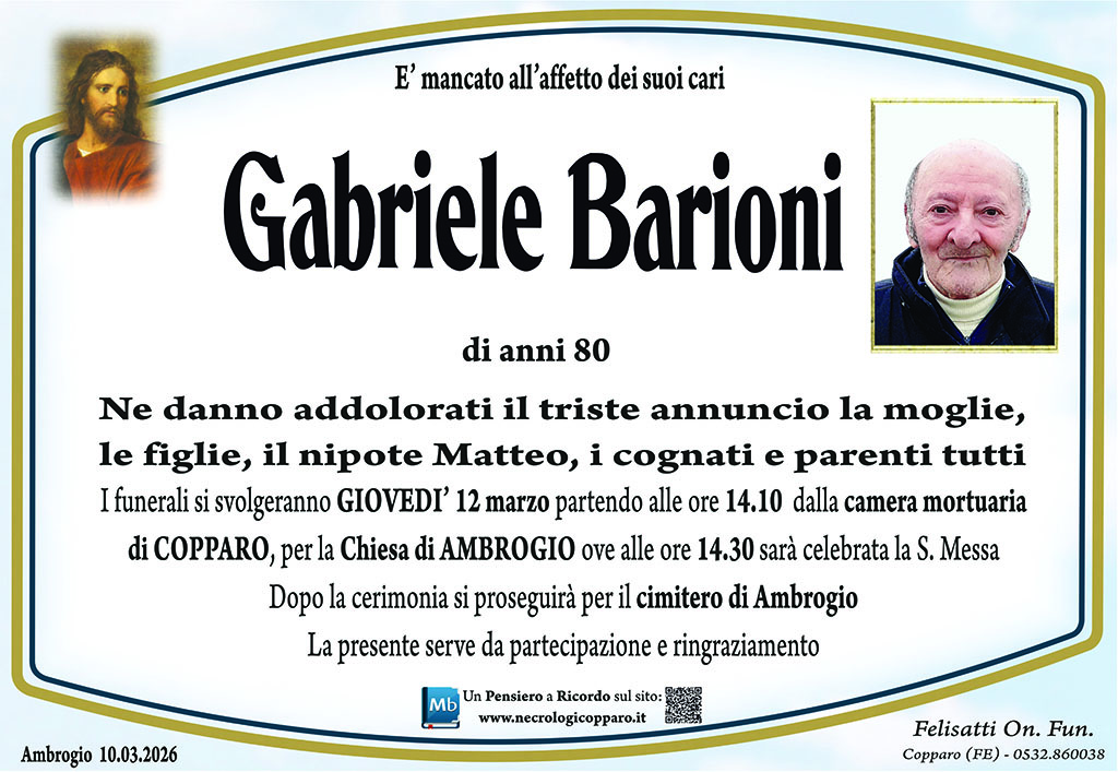 I familiari ringraziano anticipatamente tutti coloro che parteciperanno alla cerimonia funebre