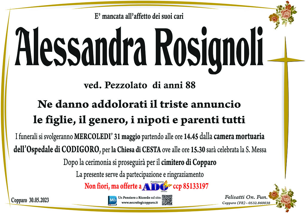 Non fiori, ma offerte a A.D.O Codigoro c.c.p :85133197