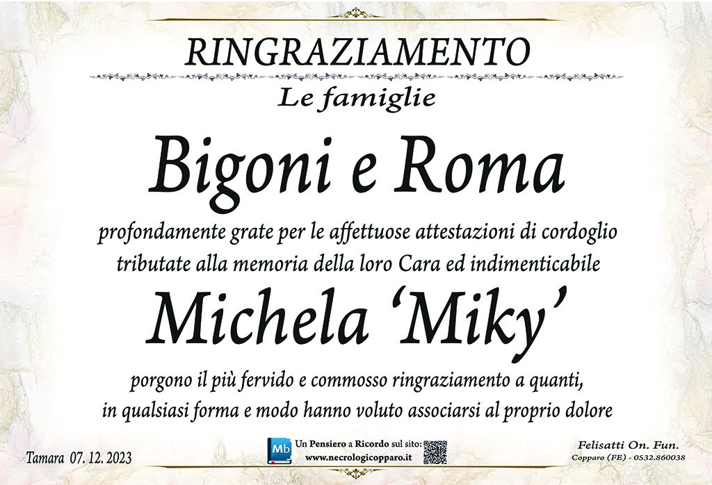 Ciao Michi, vola alto guerriera, tieni banco tra gli angeli. Resterai sempre nei nostri cuori. Un abbraccio a Nicola e Renato e uno forte a te che ti arrivi fin lassù.