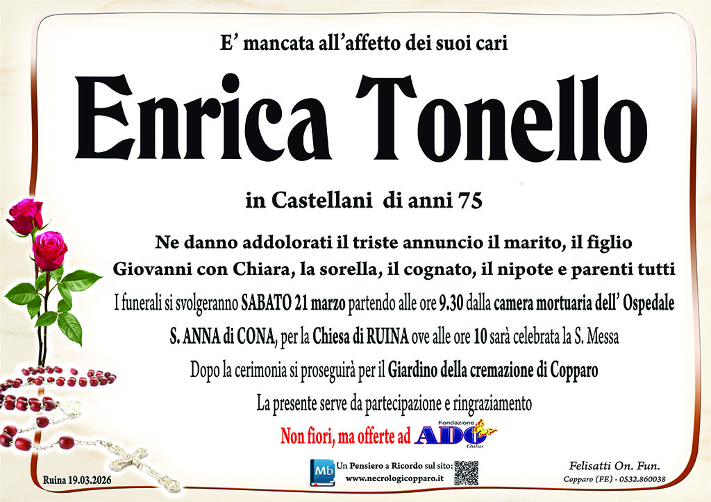 I familiari ringraziano anticipatamente tutti coloro che parteciperanno alla cerimonia funebre