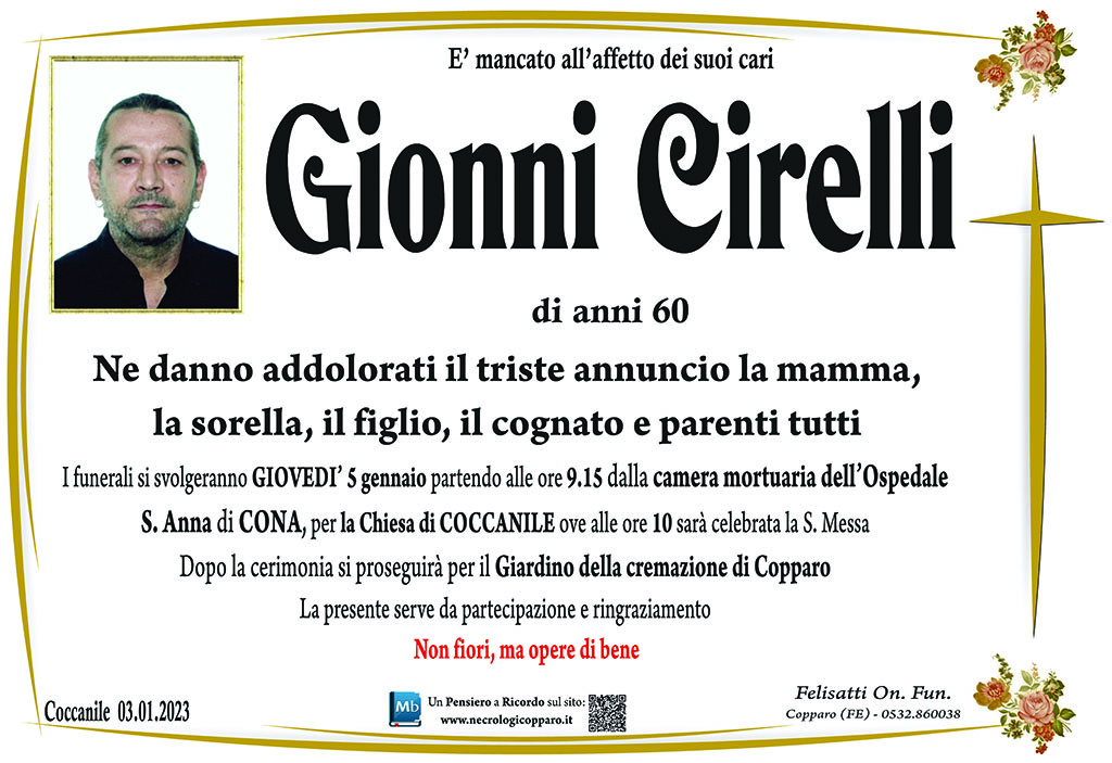 I familiari ringraziano anticipatamente tutti coloro che parteciperanno alla cerimonia funebre