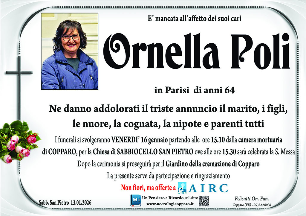 I familiari ringraziano anticipatamente tutti coloro che parteciperanno alla cerimonia funebre