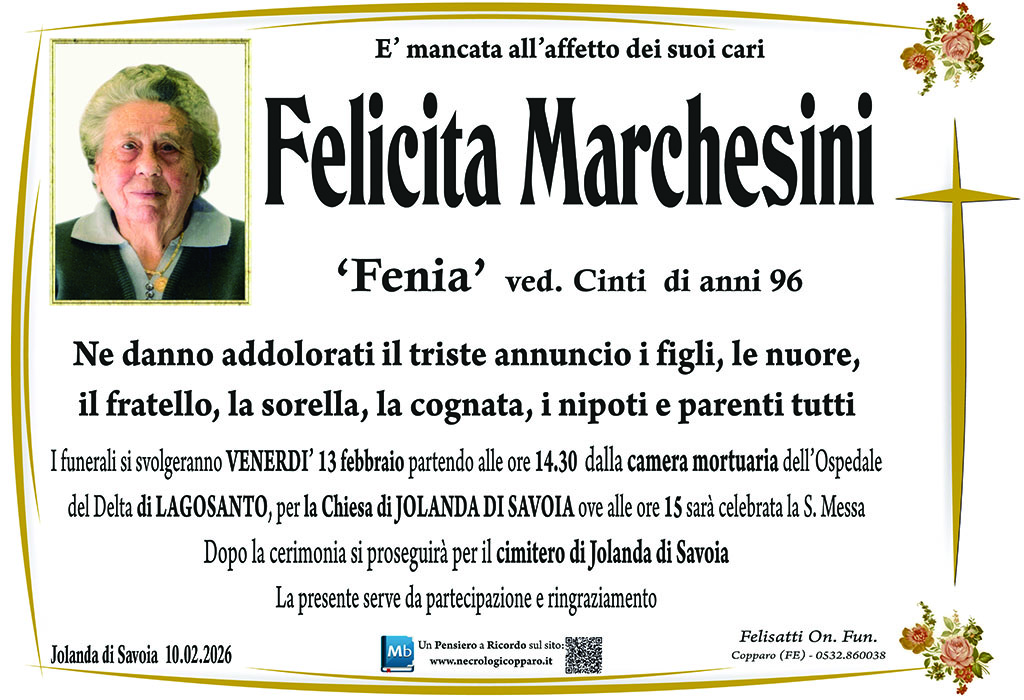 Clicca il pulsante qui sotto per visualizzare sulla mappa il luogo dove riposa Felicita Marchesini Cinti.