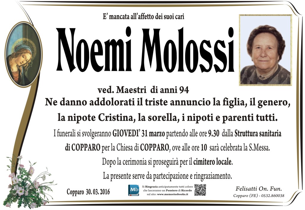 Clicca il pulsante qui sotto per visualizzare sulla mappa il luogo dove riposa Noemi Molossi Maestri.