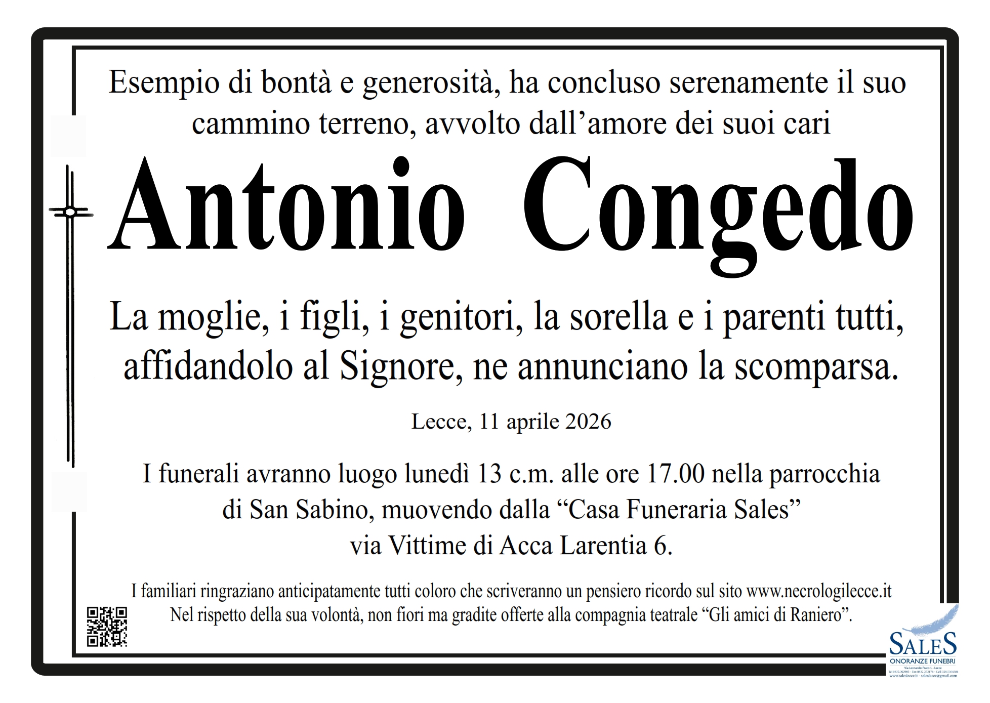 I familiari ringraziano anticipatamente tutti coloro che parteciperanno alla cerimonia funebre