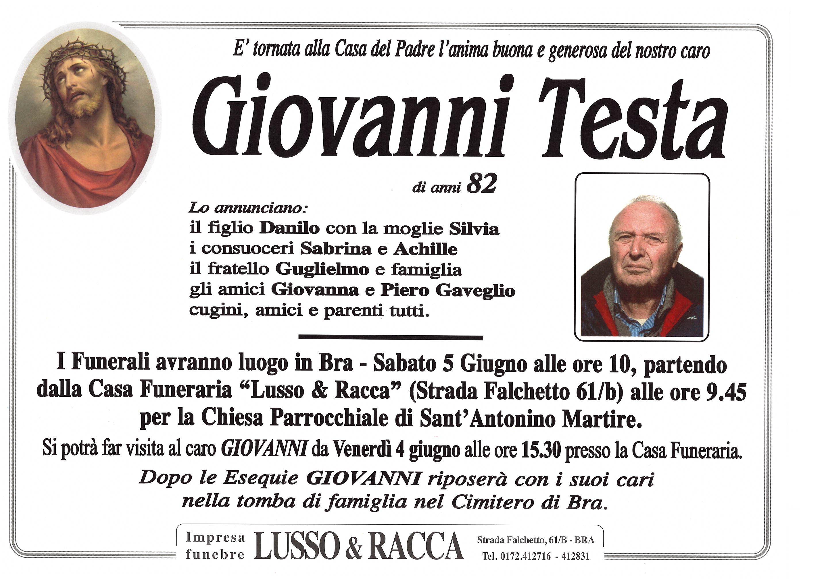 I familiari ringraziano anticipatamente tutti coloro che parteciperanno alla cerimonia funebre