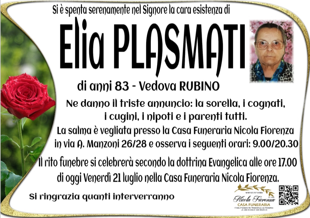 I familiari ringraziano anticipatamente tutti coloro che parteciperanno alla cerimonia funebre
