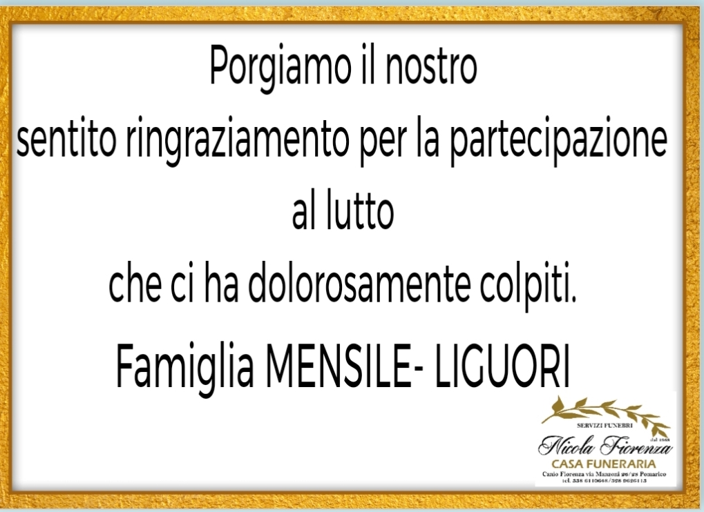 Ci stringiamo al vostro dolore, un abbraccio a Pasquale Liguori e alla moglie la perdita della cara mamma e suocera, ad Antonio, Cinzia, Antonella per la loro amata nonna