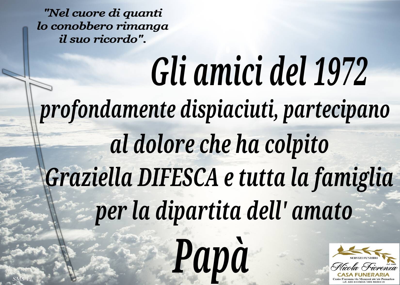 I familiari ringraziano anticipatamente tutti coloro che parteciperanno alla cerimonia funebre