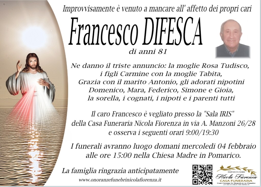 Le mie più sentite condoglianze per la scomparsa del caro Francesco che il Signore lo accolga tra le sue braccia R. I. P.