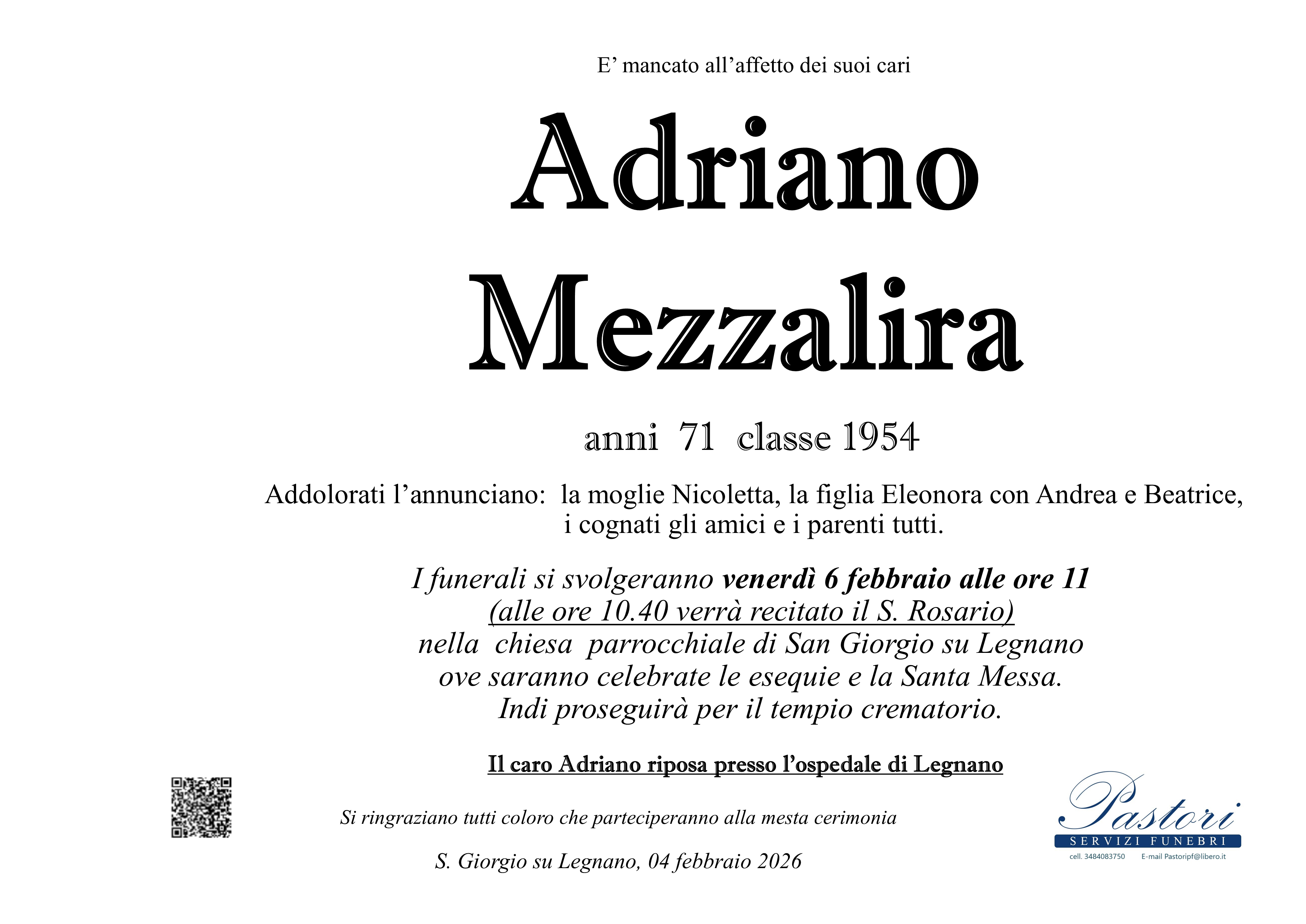 I familiari ringraziano anticipatamente tutti coloro che parteciperanno alla cerimonia funebre