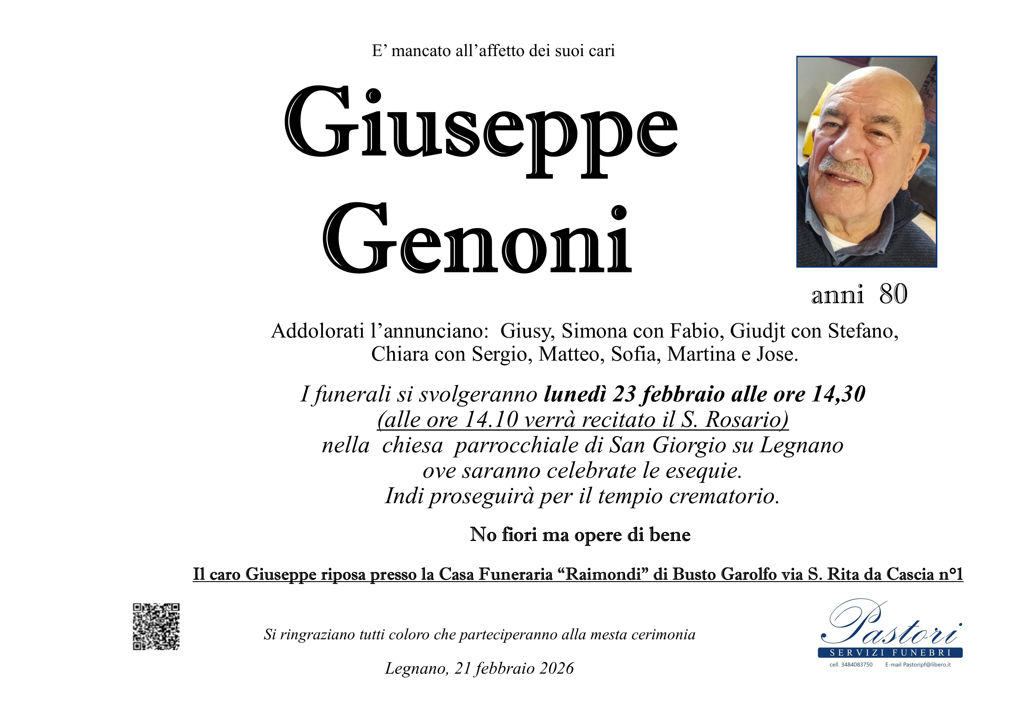 I familiari ringraziano anticipatamente tutti coloro che parteciperanno alla cerimonia funebre