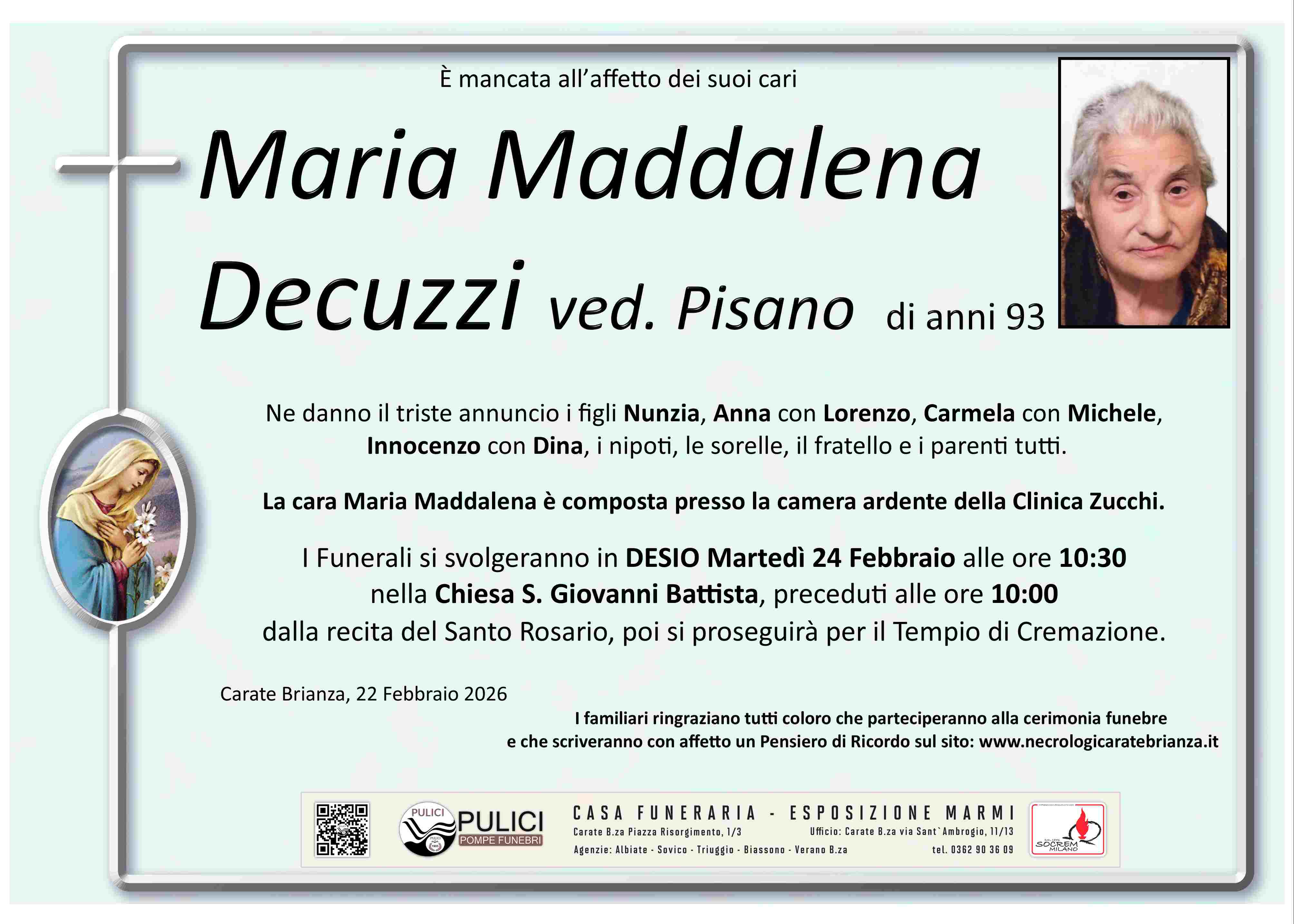 I familiari ringraziano anticipatamente tutti coloro che parteciperanno alla cerimonia funebre