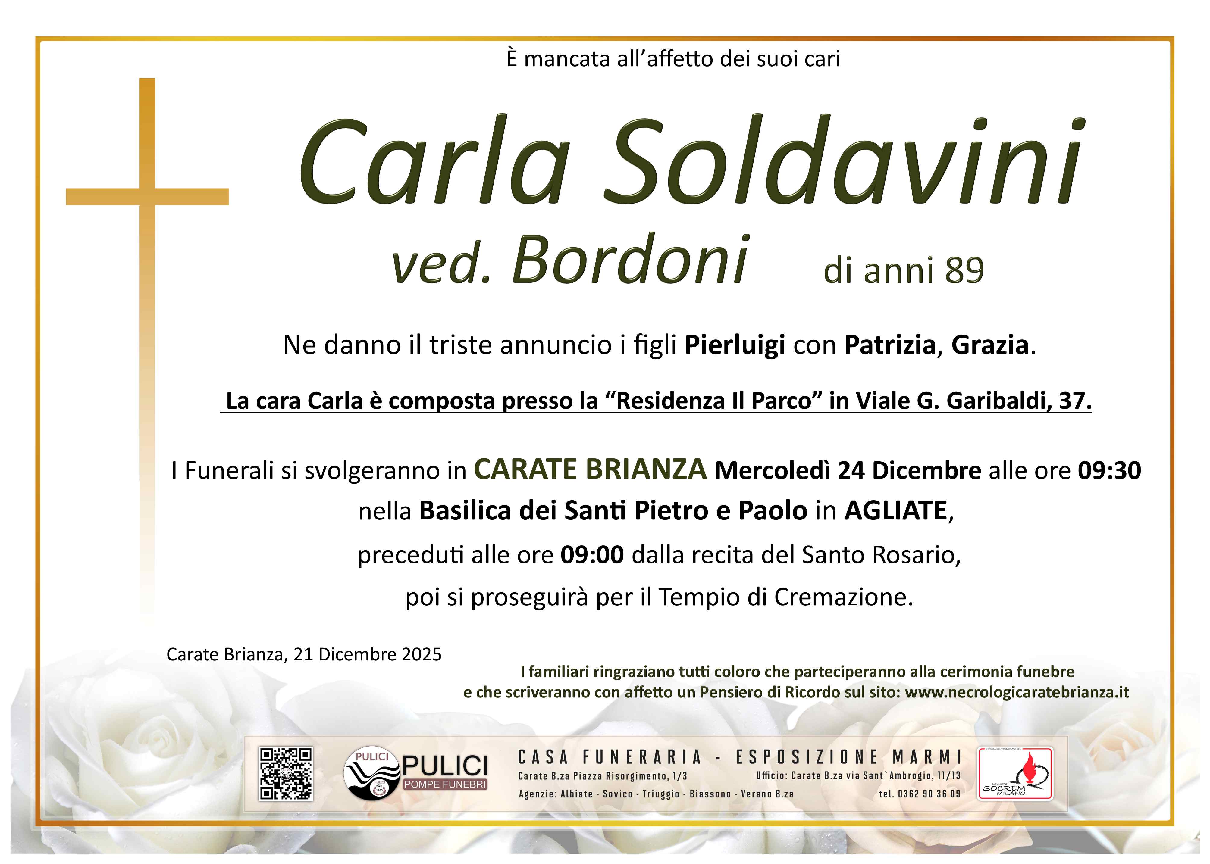 I familiari ringraziano anticipatamente tutti coloro che parteciperanno alla cerimonia funebre