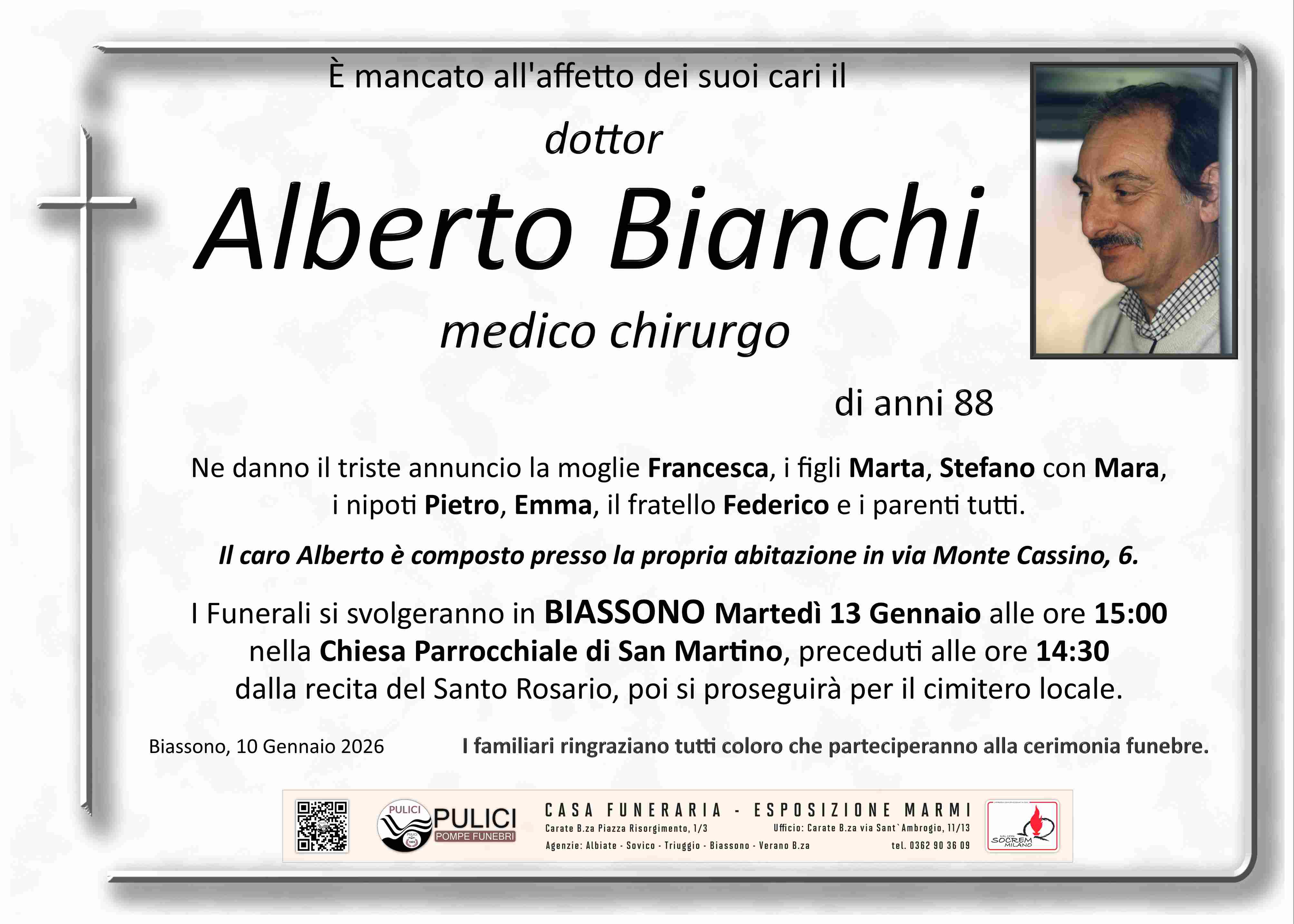 I familiari ringraziano anticipatamente tutti coloro che parteciperanno alla cerimonia funebre