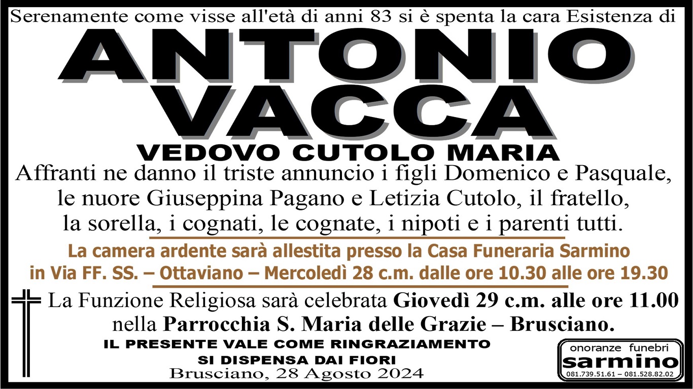 I familiari ringraziano anticipatamente tutti coloro che parteciperanno alla cerimonia funebre