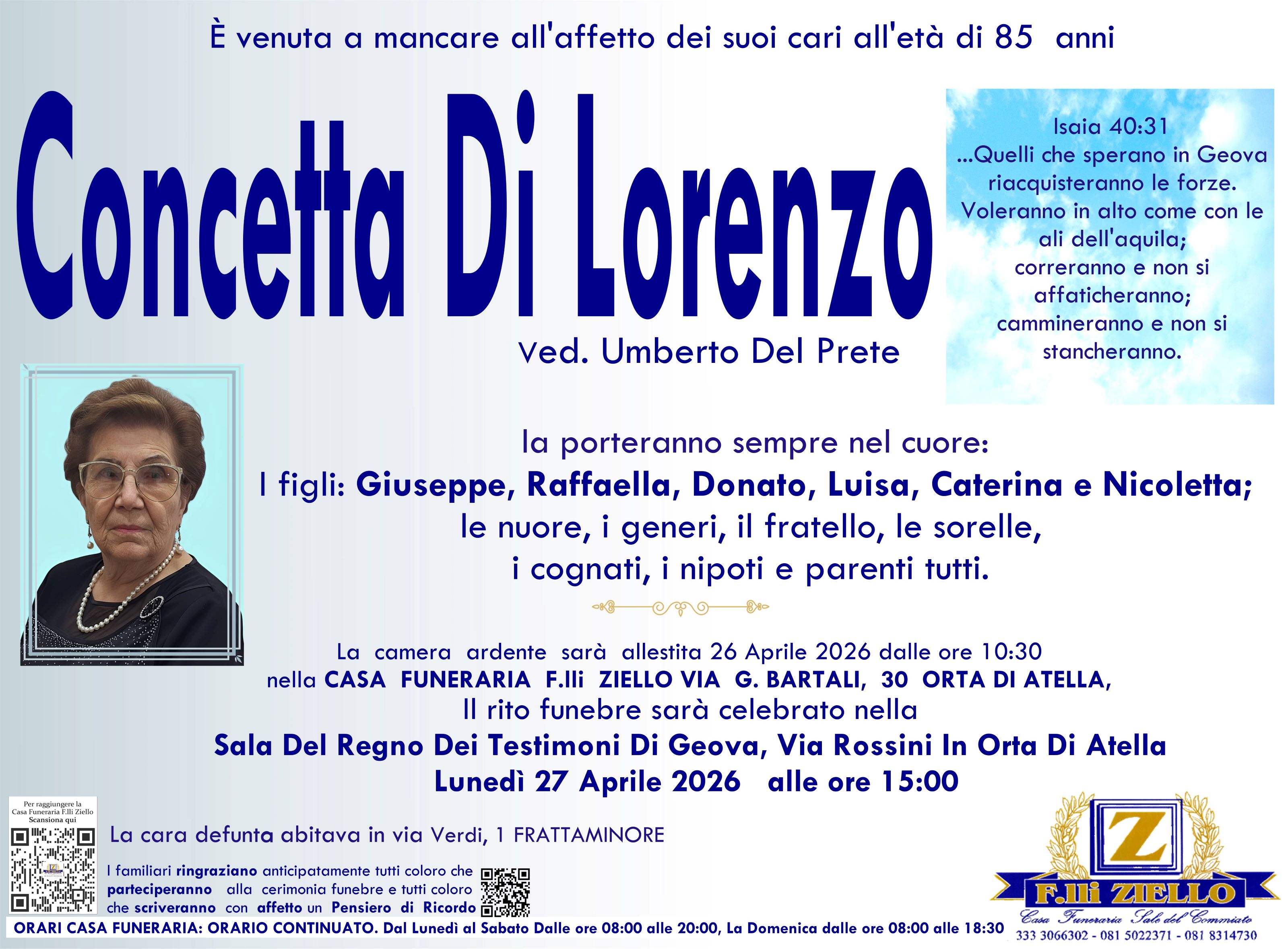 I familiari ringraziano anticipatamente tutti coloro che parteciperanno alla cerimonia funebre