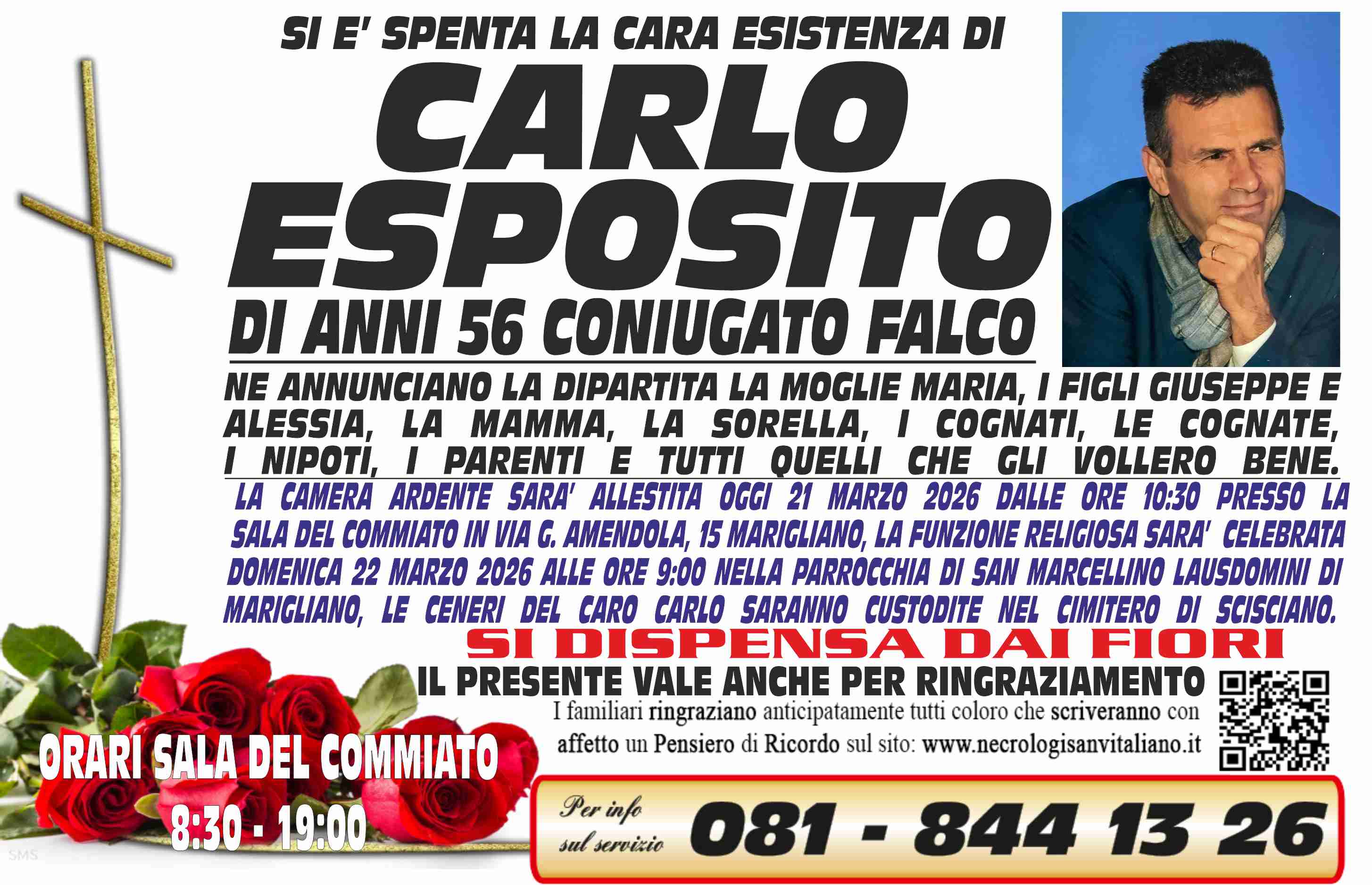 I familiari ringraziano anticipatamente tutti coloro che parteciperanno alla cerimonia funebre