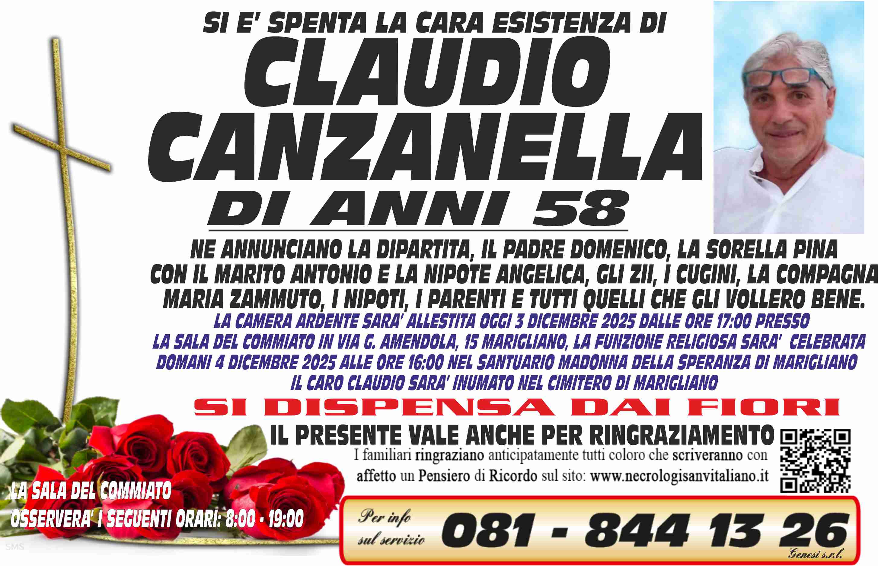 I familiari ringraziano anticipatamente tutti coloro che parteciperanno alla cerimonia funebre