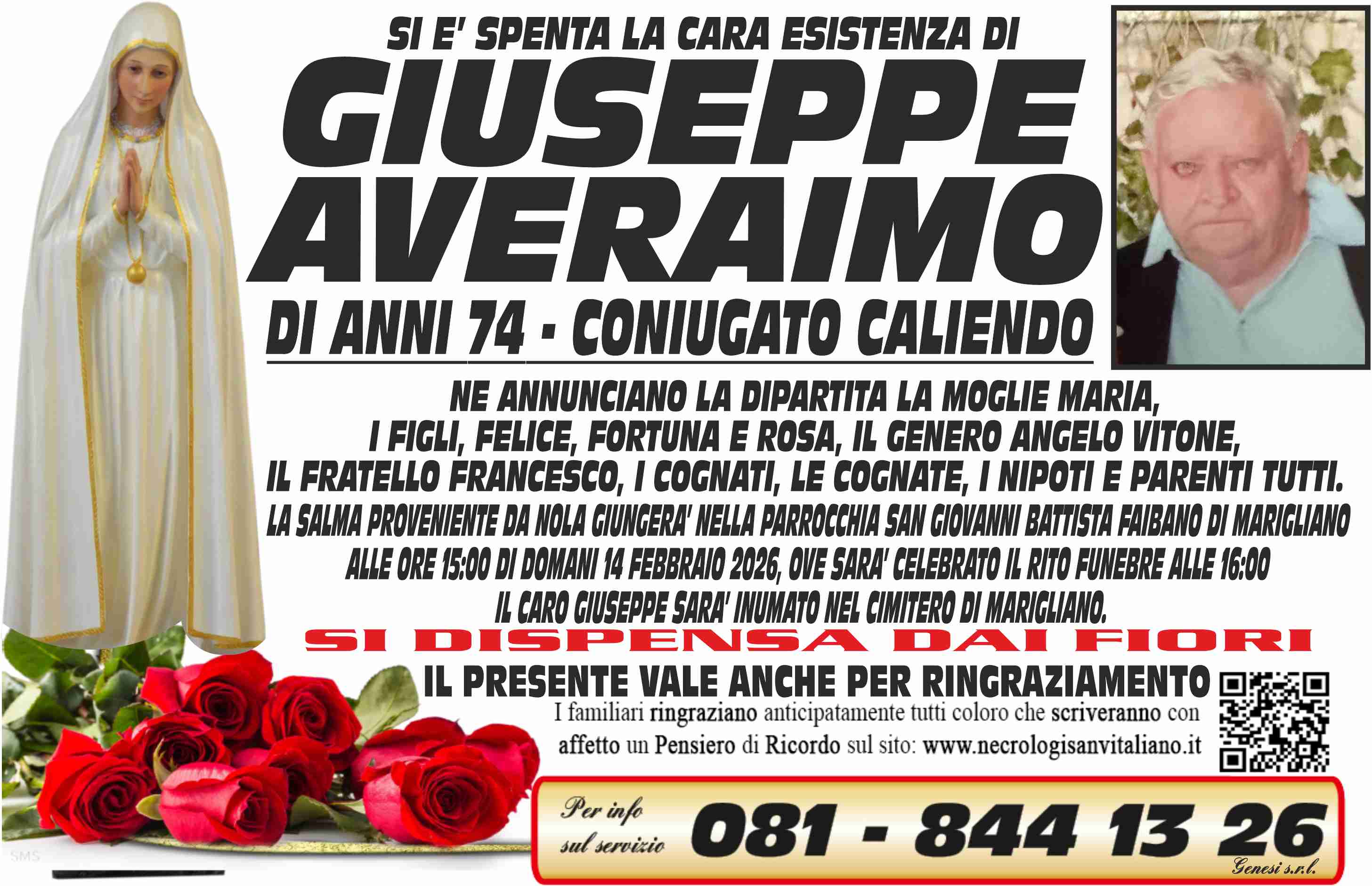 I familiari ringraziano anticipatamente tutti coloro che parteciperanno alla cerimonia funebre