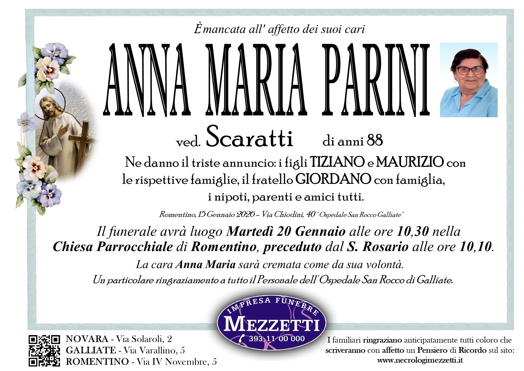 I familiari ringraziano anticipatamente tutti coloro che parteciperanno alla cerimonia funebre