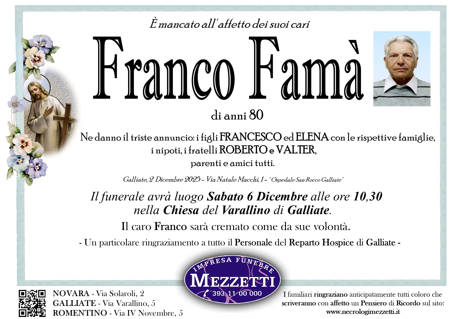 I familiari ringraziano anticipatamente tutti coloro che parteciperanno alla cerimonia funebre