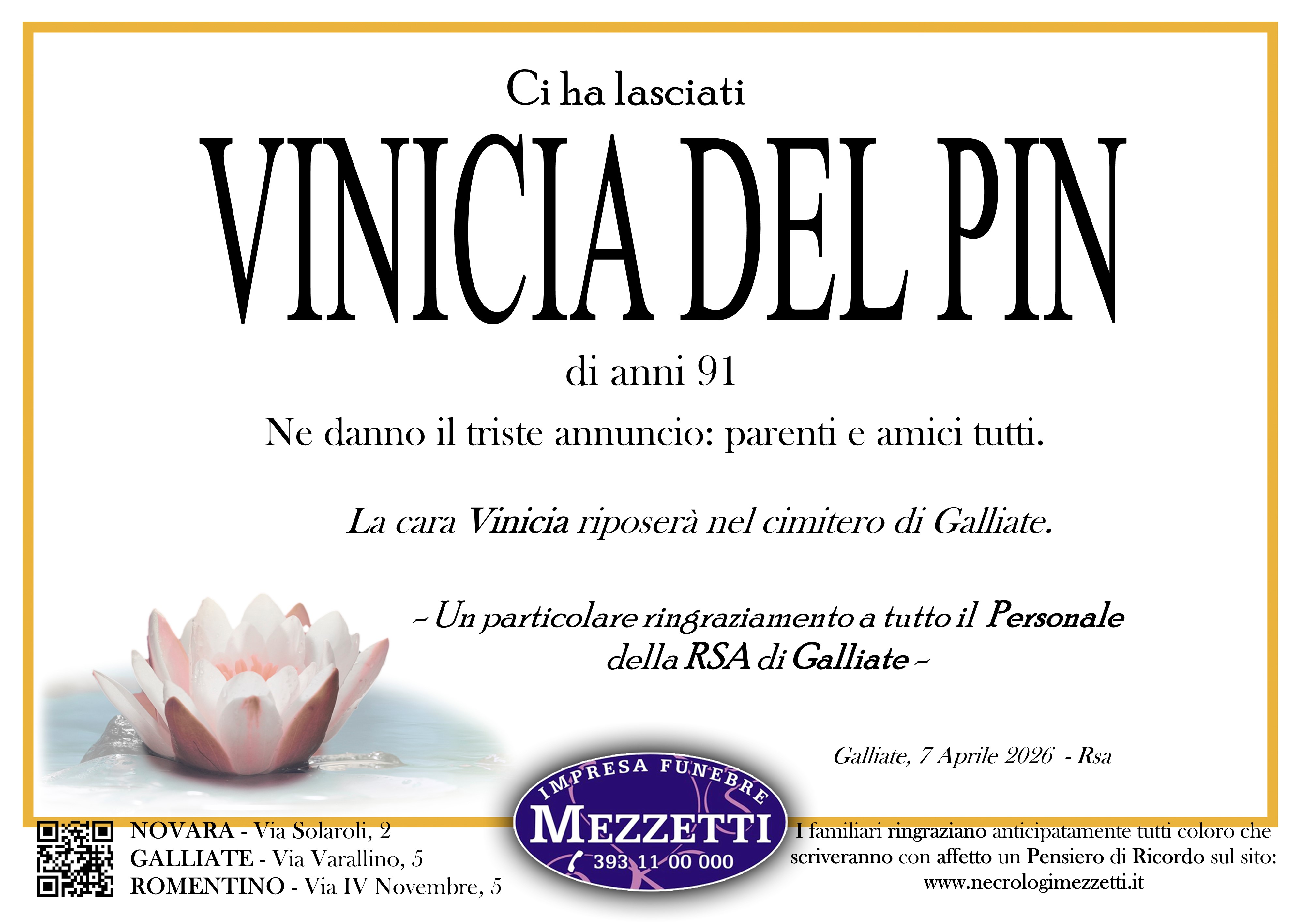 I familiari ringraziano anticipatamente tutti coloro che parteciperanno alla cerimonia funebre
