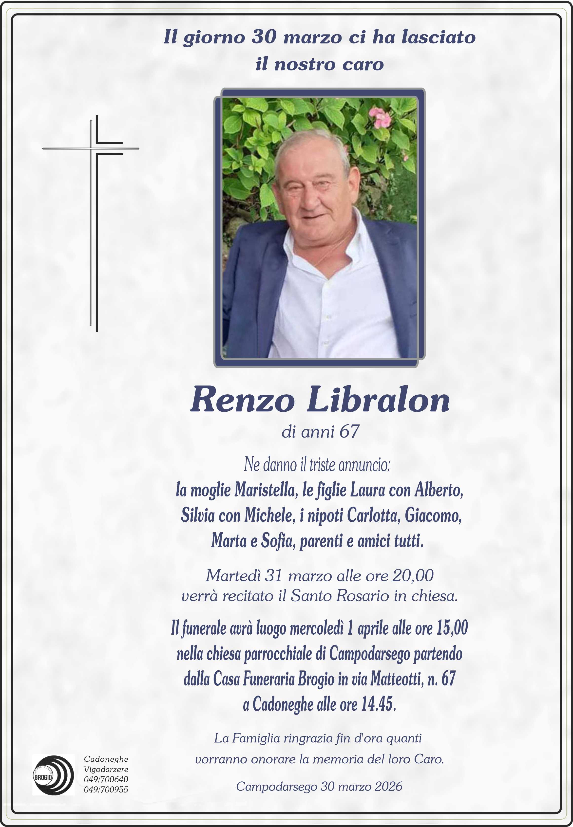 I familiari ringraziano anticipatamente tutti coloro che parteciperanno alla cerimonia funebre