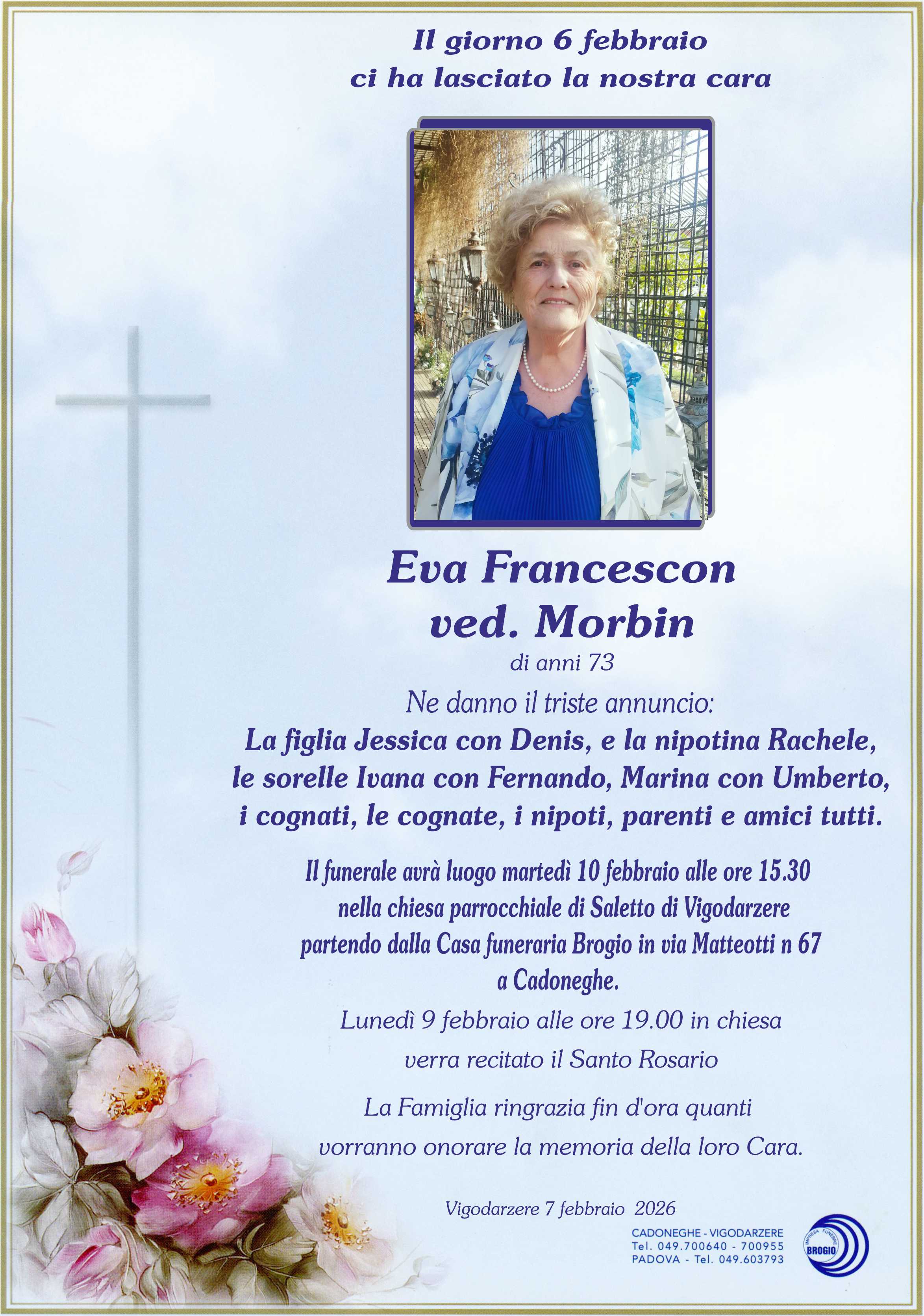 I familiari ringraziano anticipatamente tutti coloro che parteciperanno alla cerimonia funebre