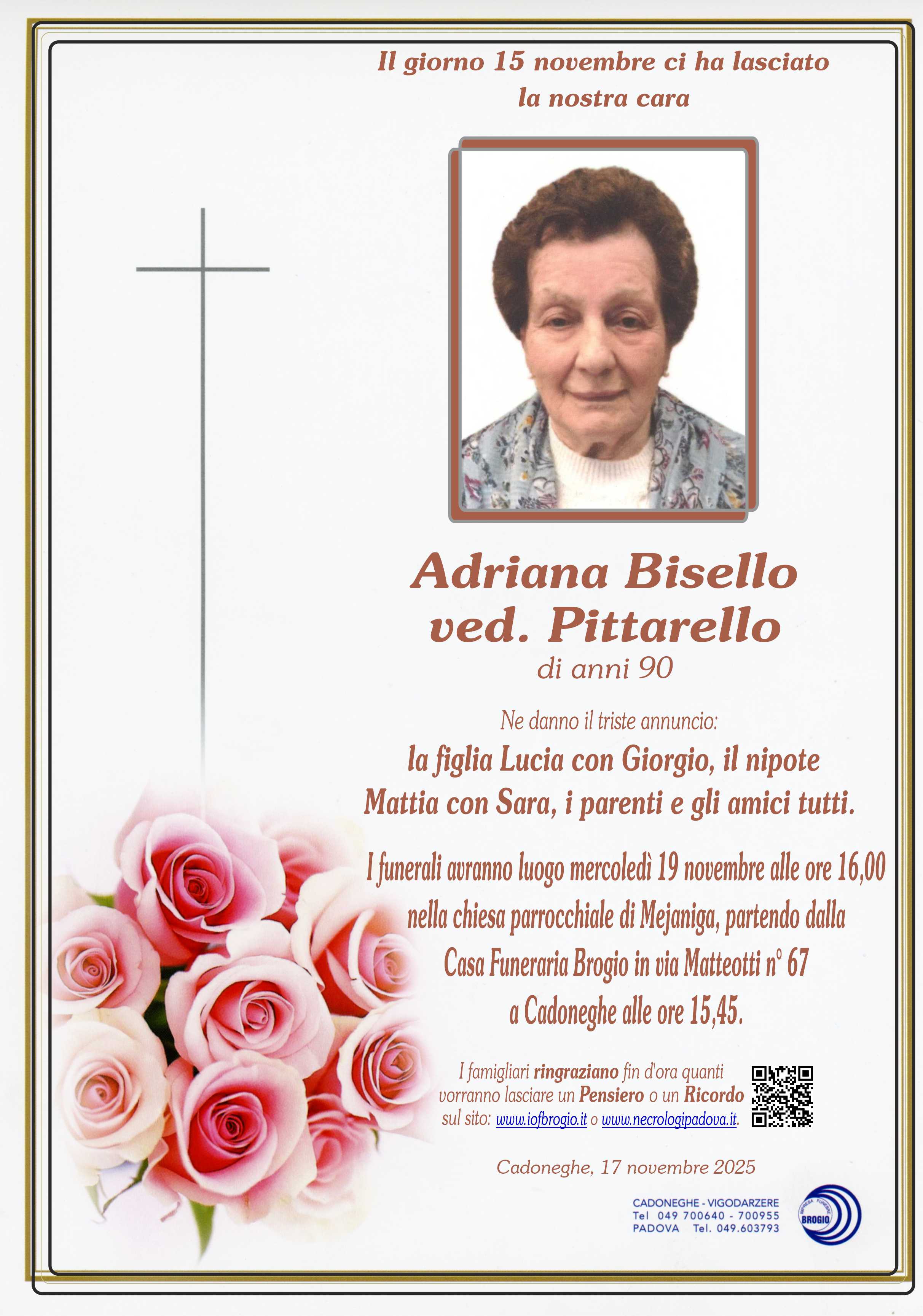 I familiari ringraziano anticipatamente tutti coloro che parteciperanno alla cerimonia funebre