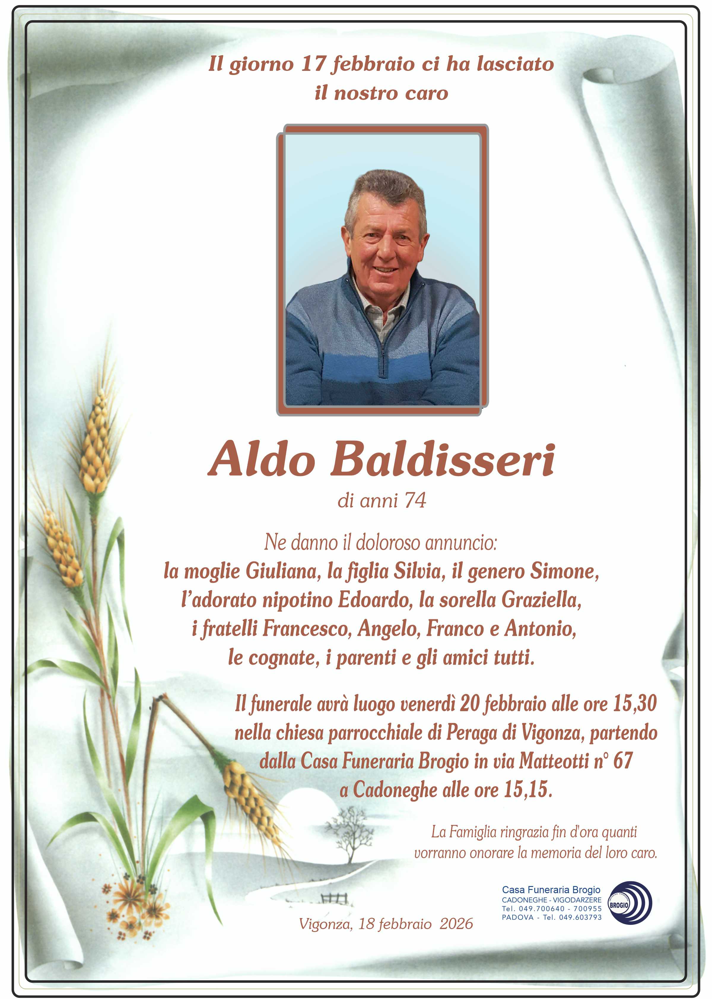 I familiari ringraziano anticipatamente tutti coloro che parteciperanno alla cerimonia funebre