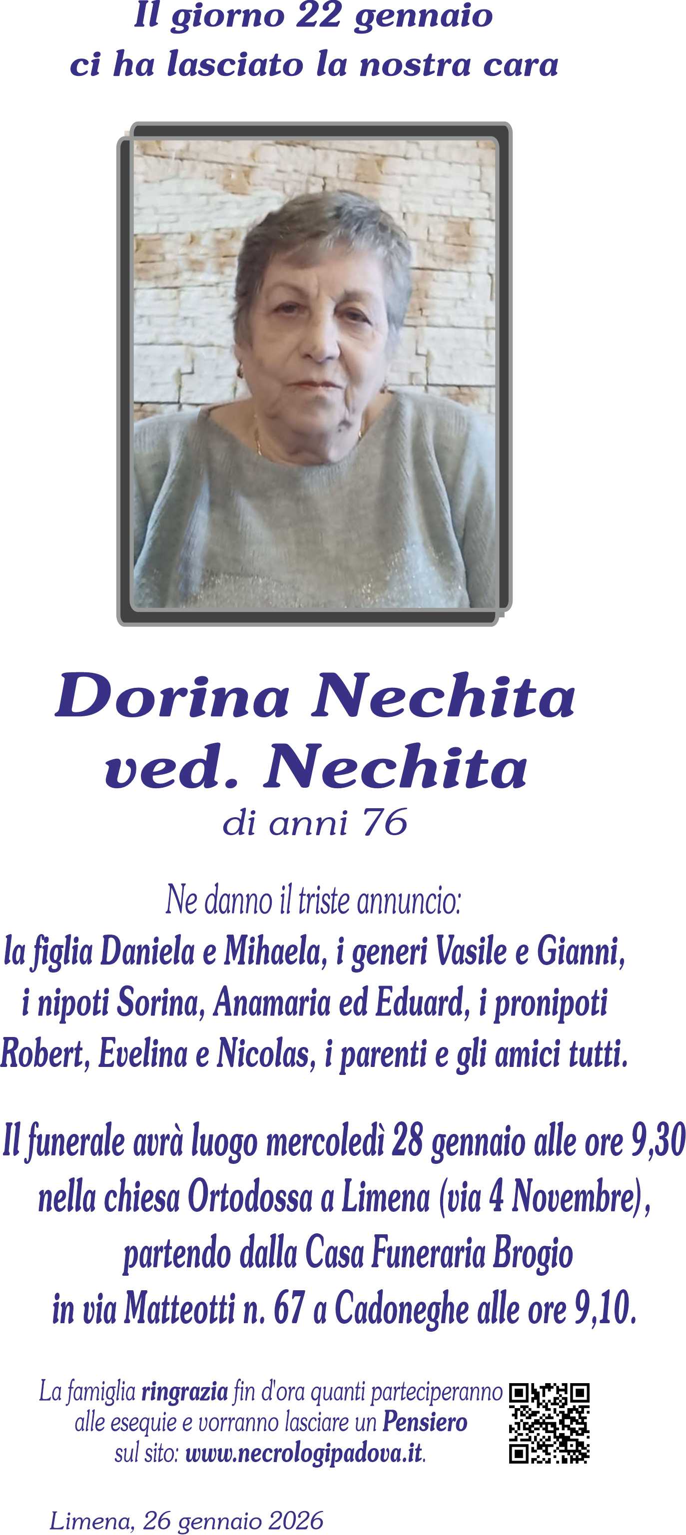 I familiari ringraziano anticipatamente tutti coloro che parteciperanno alla cerimonia funebre