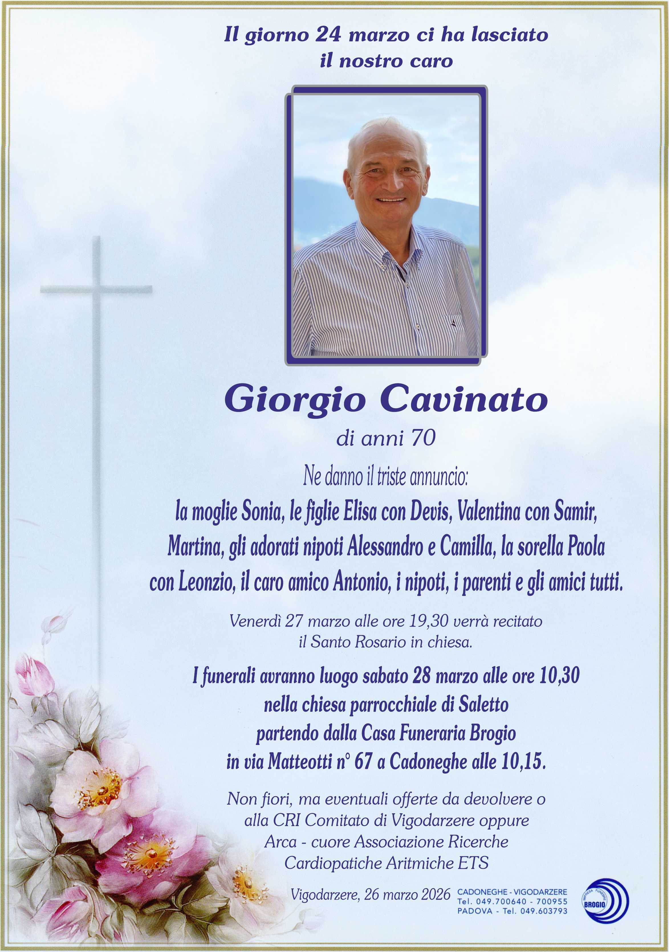 I familiari ringraziano anticipatamente tutti coloro che parteciperanno alla cerimonia funebre