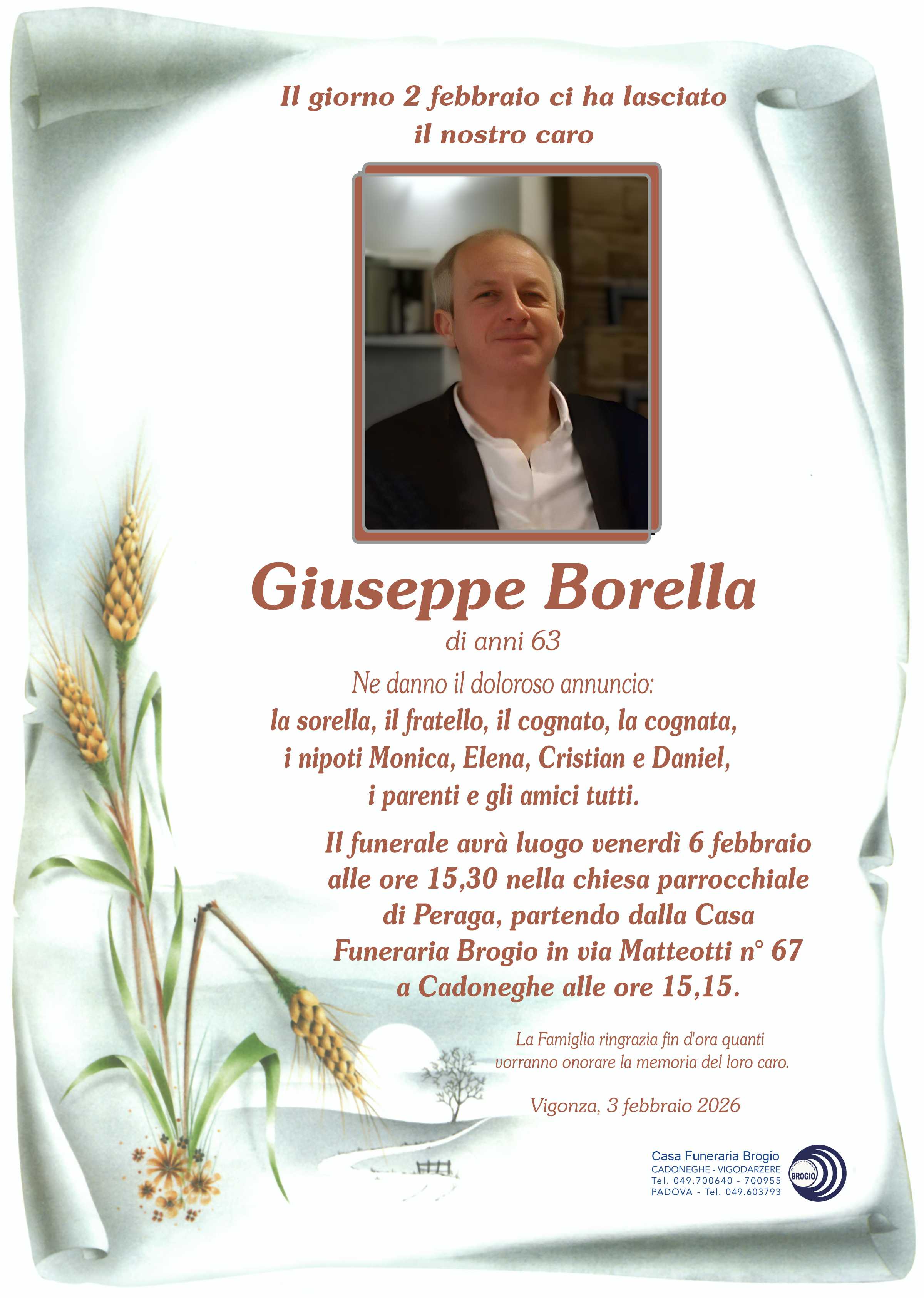 I familiari ringraziano anticipatamente tutti coloro che parteciperanno alla cerimonia funebre