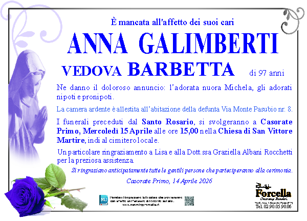 I familiari ringraziano anticipatamente tutti coloro che parteciperanno alla cerimonia funebre