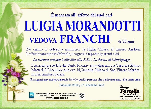 I familiari ringraziano anticipatamente tutti coloro che parteciperanno alla cerimonia funebre