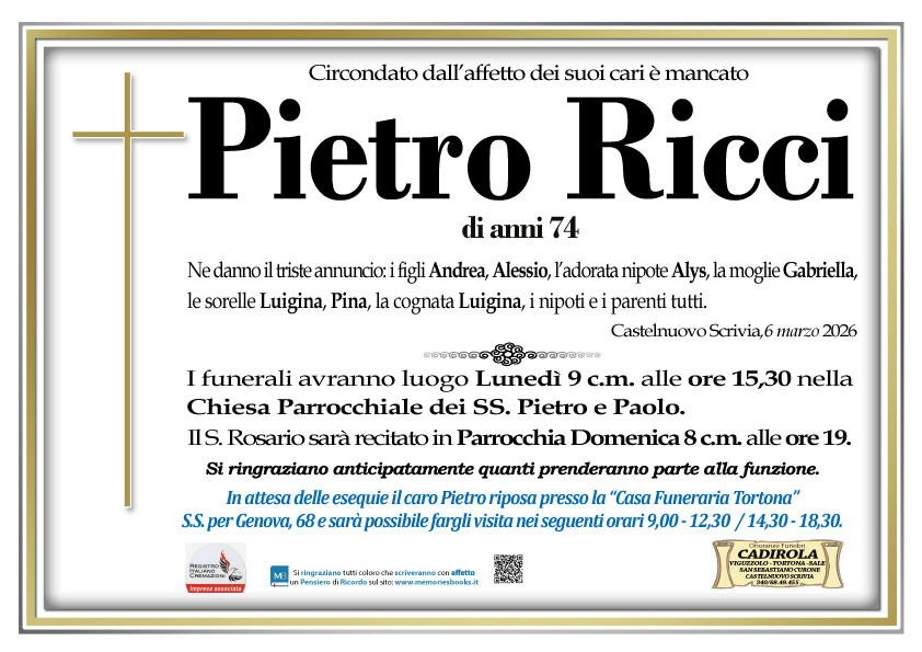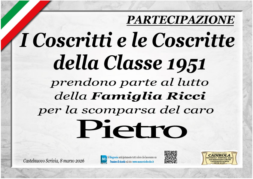 I familiari ringraziano anticipatamente tutti coloro che parteciperanno alla cerimonia funebre