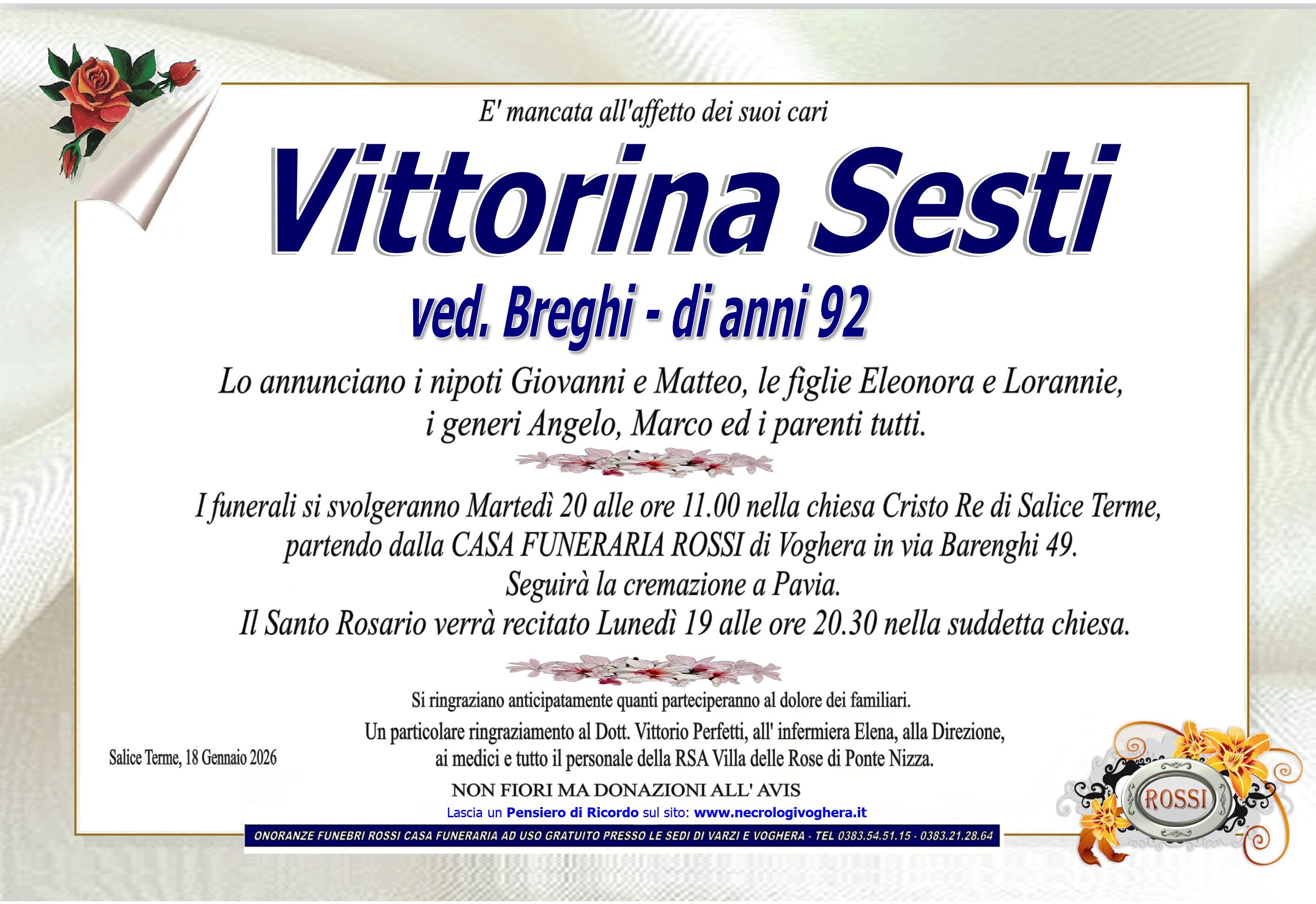 I familiari ringraziano anticipatamente tutti coloro che parteciperanno alla cerimonia funebre